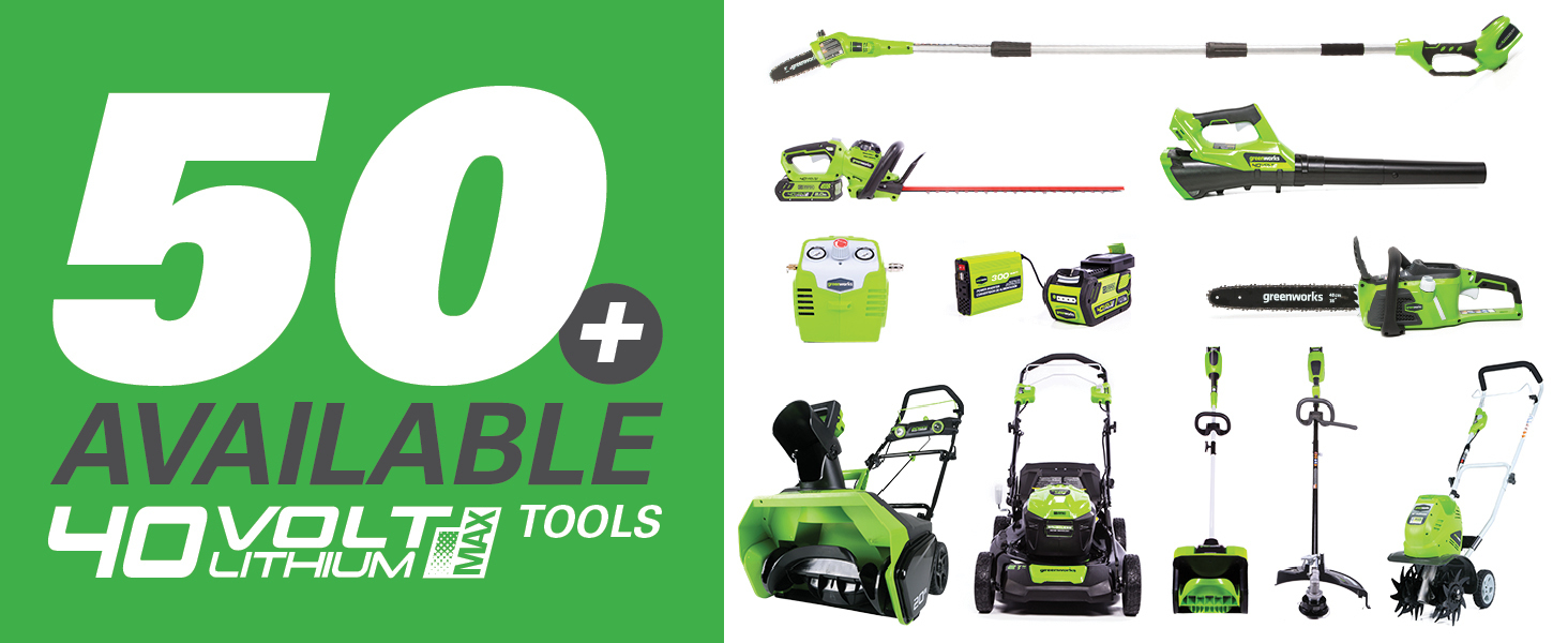 Главная отличительчая черта аккумуляторной техники GREENWORKS — принцип «одна батарея и зарядное устройство на всю линейку». Это значит, что они могут использоваться на целом арсенале техники и садовых инструментов в рамках одинакового вольтажа — 24, 40, 60 или 82 вольт. Например, аккумулятор удобной и производительной цепной пилы GD40CS18 подойдет для более чем 15 устройств из линейки 40V. При этом на данном конкретном агрегате он рассчитан на автономную работу до 110 спилов.