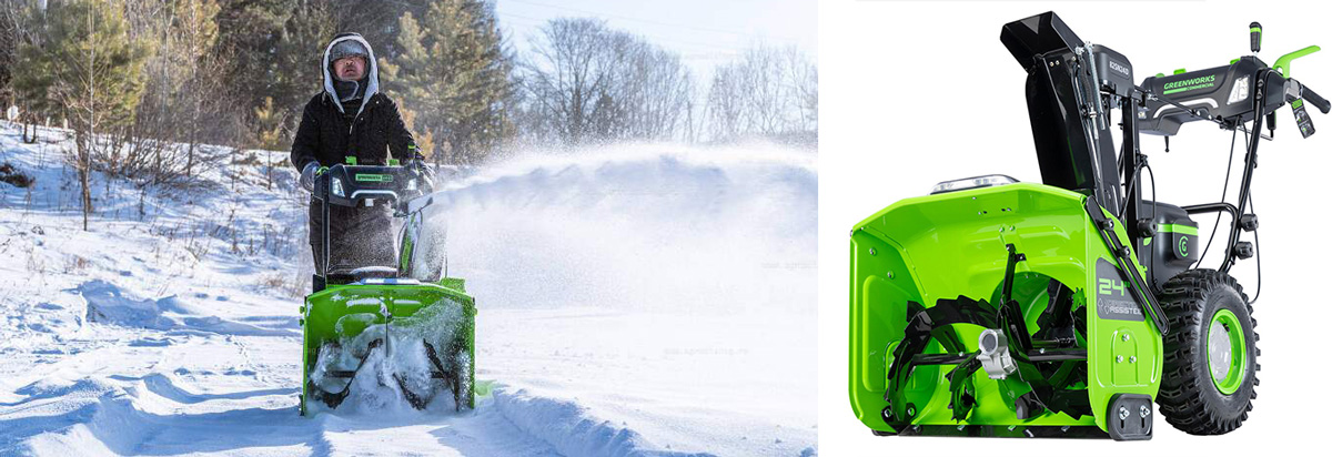 Поэтому, к примеру, снегоуборщиком 82V GREENWORKS GD82ST56 можно пользоваться в любую погоду. Более того, это самоходная техника с возможностью совершения разворота на месте, это делает его не только практичным, но и удобным, маневренным. И, кстати, это первый полноценный самоходный снегоуборочный агрегат в мире, функционал которого практически аналогичен бензиновым аппаратам.