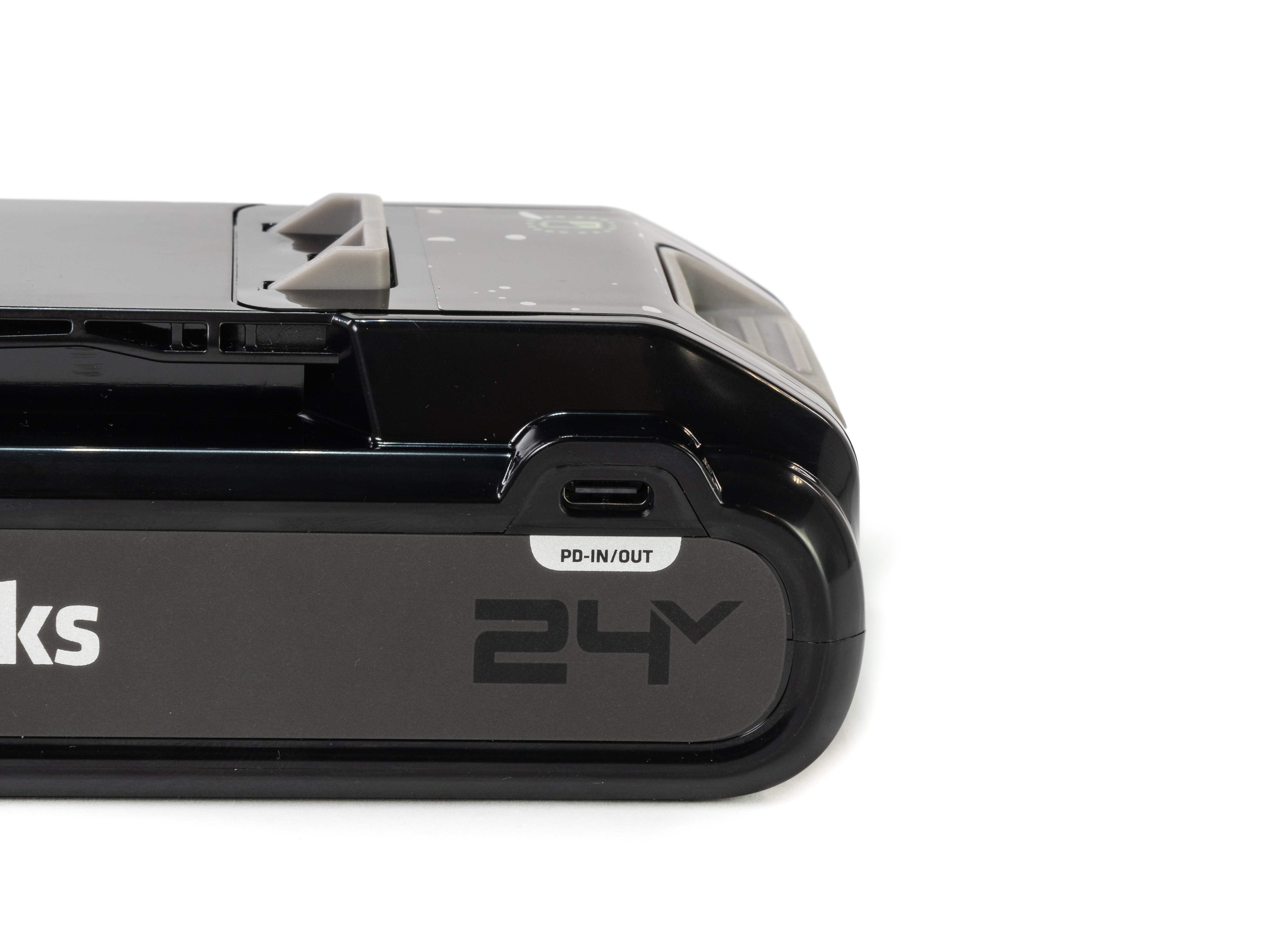 Батарея емкостью 4 Ач обладает USB-С разъемами, что позволяет использовать ее в качестве зарядки для мобильных телефонов, планшетов и других портативных устройств. Максимальная мощность подключения 2 x 65 Вт.