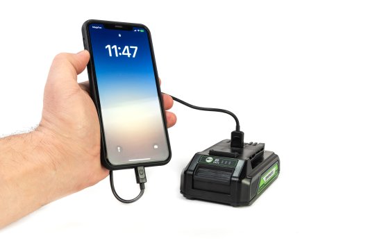 Аккумулятор Greenworks G24USB2 24V 2Ач 2939207 состоит из нескольких ячеек высокого класса - А++. Ячейки управляются специальной платой с встроенным контроллером, благодаря которой ячейки заряжаются и разряжаются равномерно и одновременно, а также установлен чип для защиты от перегрева/перезаряда и глубокого разряда. Это увеличивает срок эксплуатации аккумулятора (до 2000 циклов), время работы устройства от аккумулятора (на 20%), а при постепенном разряжении батареи во время работы инструмент не теряет своей мощности. Аккумулятор имеет USB-разъем с помощью которого его можно использовать в качестве зарядного устройства.