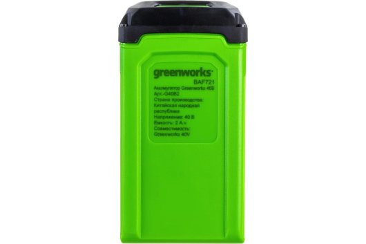 Аккумулятор G-MAX 40V GREENWORKS G40B2 - это литий ионная (Li-ion) батарея, выполненная по самой современной технологии. Этот аккумулятор может использоваться для питания всех устройств Greenworks линейки G-MAX 40V.