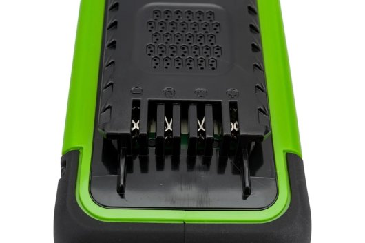 Литий-ионная батарея имеет емкость 8 Ач, и обеспечивает самое длительное время работы в своем классе. Отсутствие эффекта памяти позволяет работать длительное время заряжать и подзаряжать аккумулятор по мере необходимости. Аккумулятор оснащен высокотехнологичным контроллером для защиты от глубокого разряда и длительного срока пользования. Заряжается от зарядного устройства на 2 А 240 мин, на 4А — 120 мин.