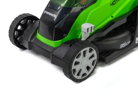 Аккумуляторная газонокосилка Greenworks G40LM35 линейки G-MAX 40V является стартовой моделью в линейке аккумуляторных 40-вольтовых газонокосилок Greenworks.