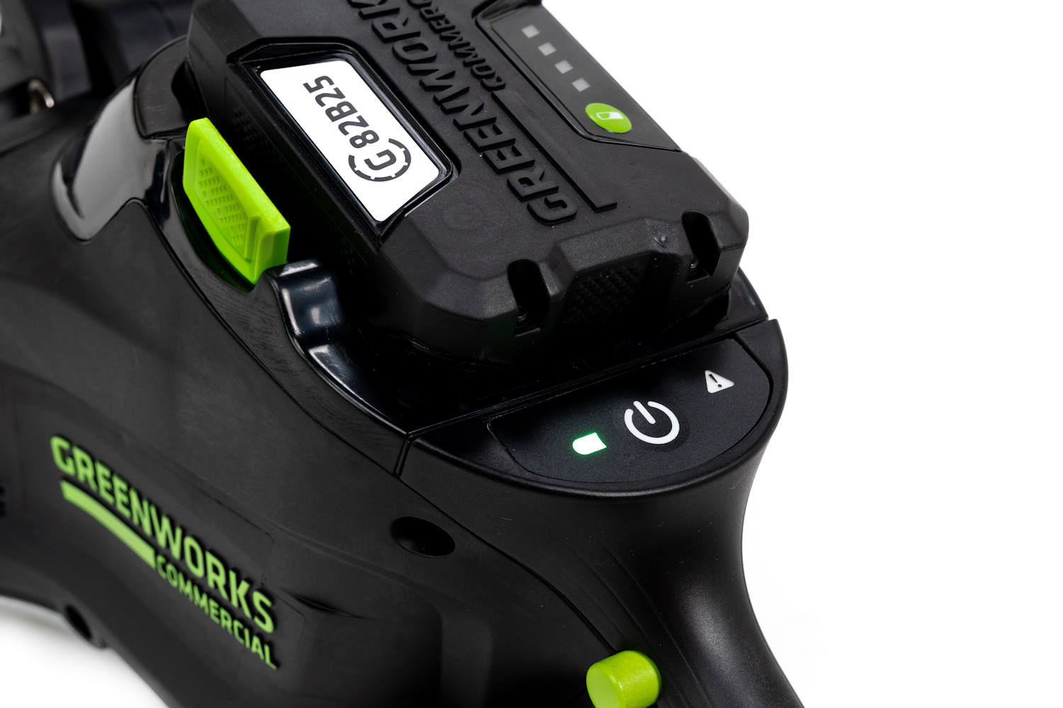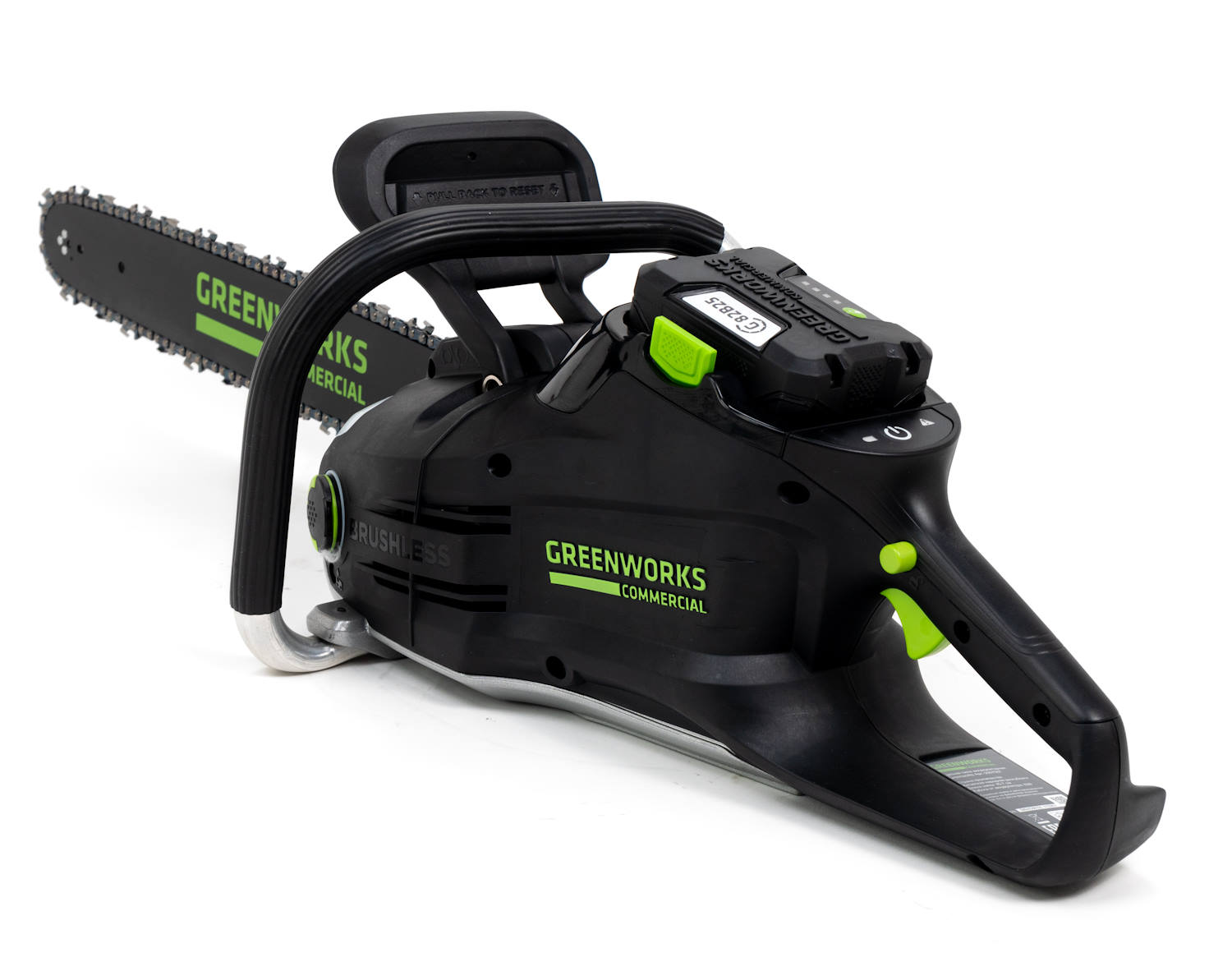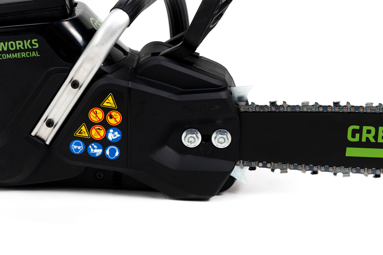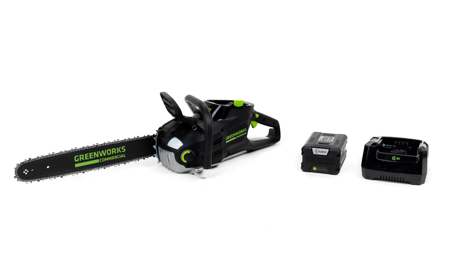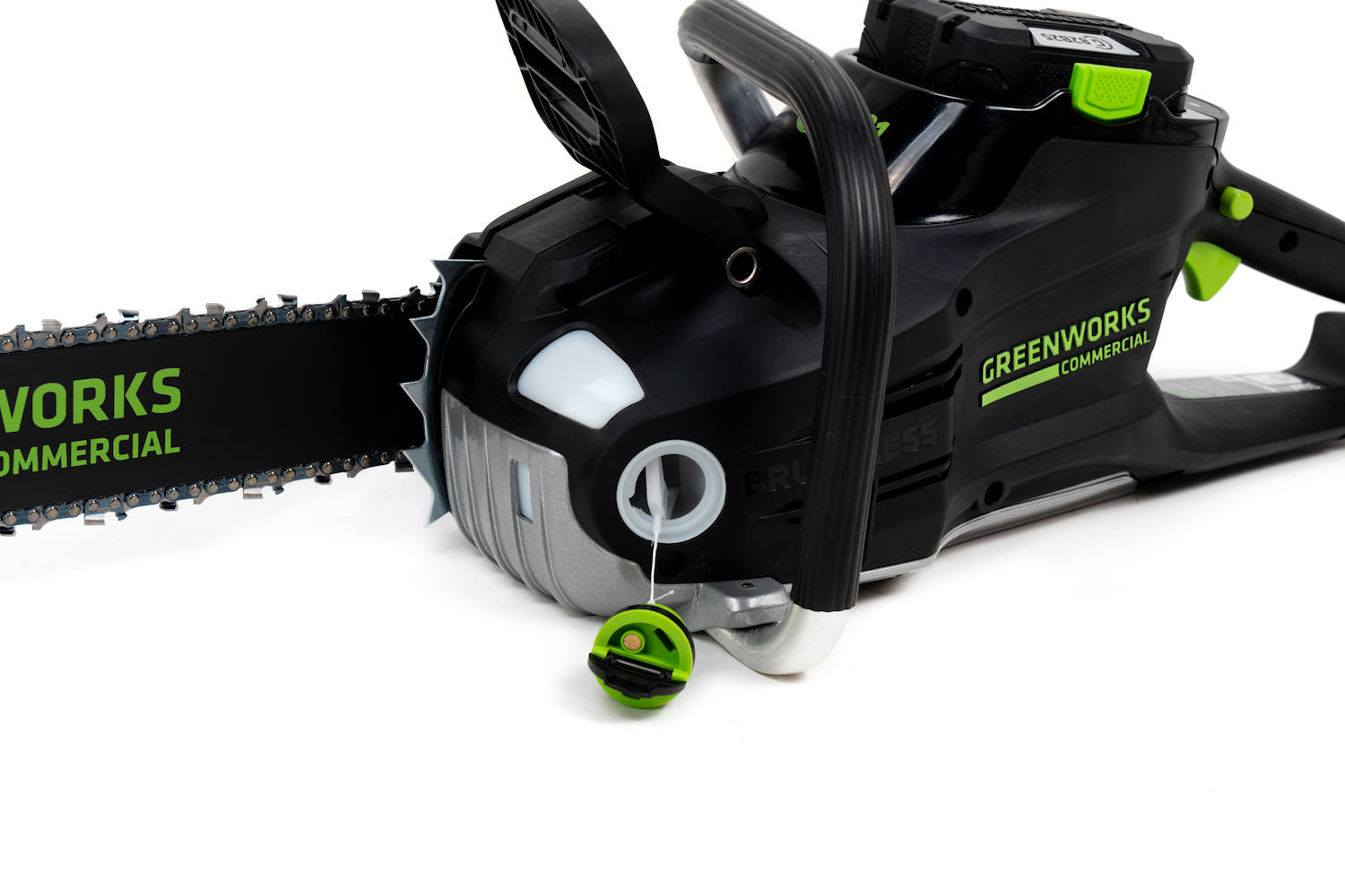 Бесщеточная аккумуляторная цепная пила Greenworks GC82CS25 82 В, с АКБ 2.5 А*ч и ЗУ 2007507UA предназначена для заготовки дров и распиливания деревьев. Надежность. Оснащена бесщеточным электрическим двигателем, который отличается высокой мощностью, экологичностью, низким уровнем шума и простотой обслуживания. Масляный бачок имеет прозрачный корпус для удобства контроля за уровнем масла. Обрезиненная дополнительная рукоятка обеспечивает крепкий хват во время работы.