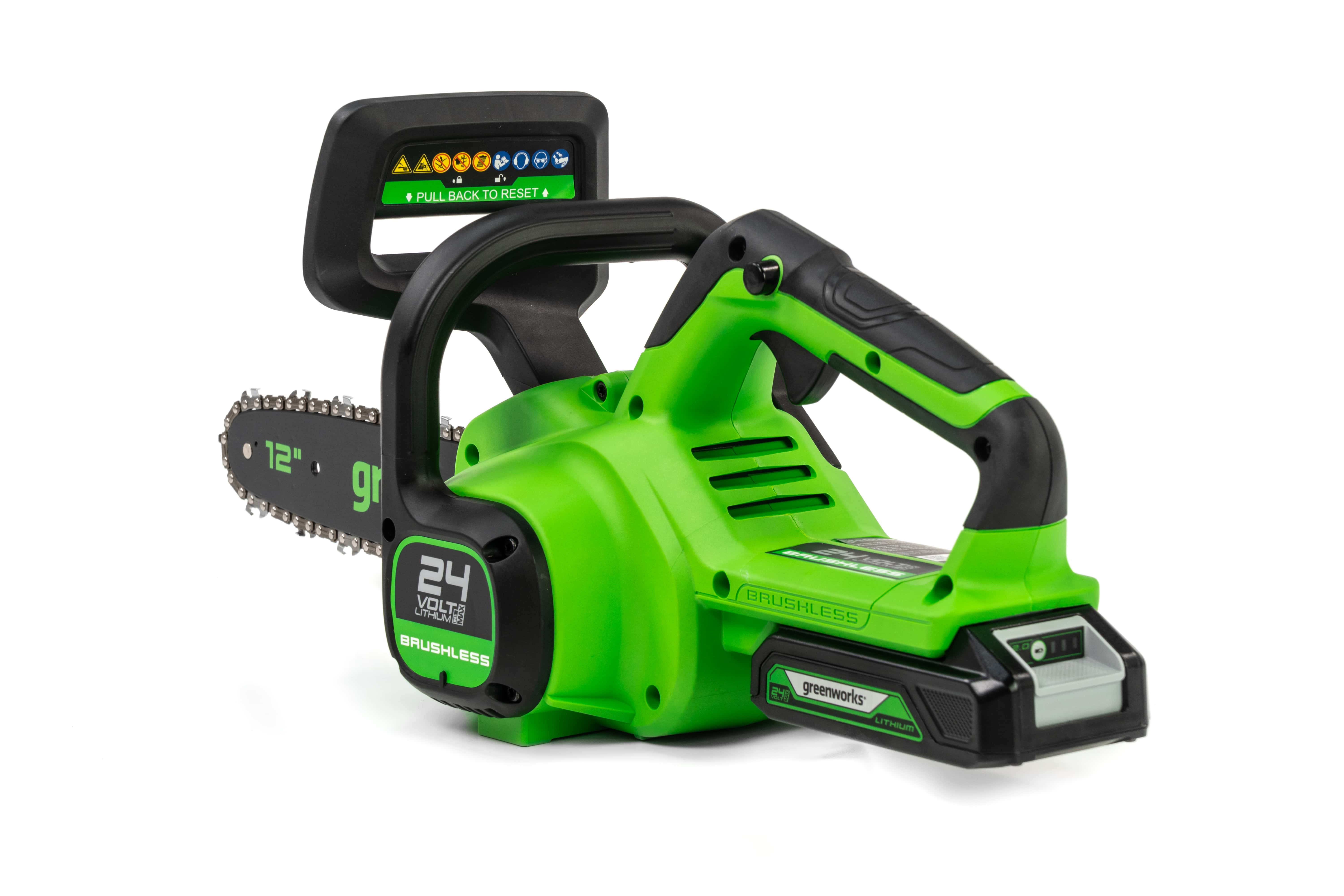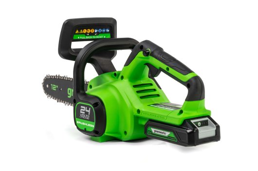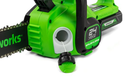 Аккумуляторная пила GREENWORKS GD24CS30 - компактная и мощная цепная пила имеет шину длиной 30 см для быстрого и простого распила небольших деревьев и бревен. Ее бесщеточный двигатель DigiPro дает цепи скорость вращения 7,8 м/c, что позволяет с легкостью пилить даже сырую древесину. Базовая цепь имеет шаг 3/8” и паз 1,1 мм, что подходит для большинства простых задач на участке.