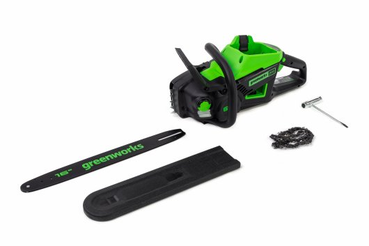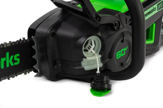 Цепная пила Greenworks GD60CS25 60V 2008907 — полупрофессиональный инструмент, подходящий для решения большинства задач бытового и профессионального уровня. Пила подойдет для распила бревен и бруса, а также валки деревьев. Мощный и надежный бесщеточный двигатель DigiPro позволяет инструменту развивать скорость цепи до 24 м/c, что вместе с пильной шиной длиной 40,6 см позволяет не только распиливать доски и брус, но и спиливать деревья. Шаг цепи 3/8”, паз 0,05” (1,3мм).