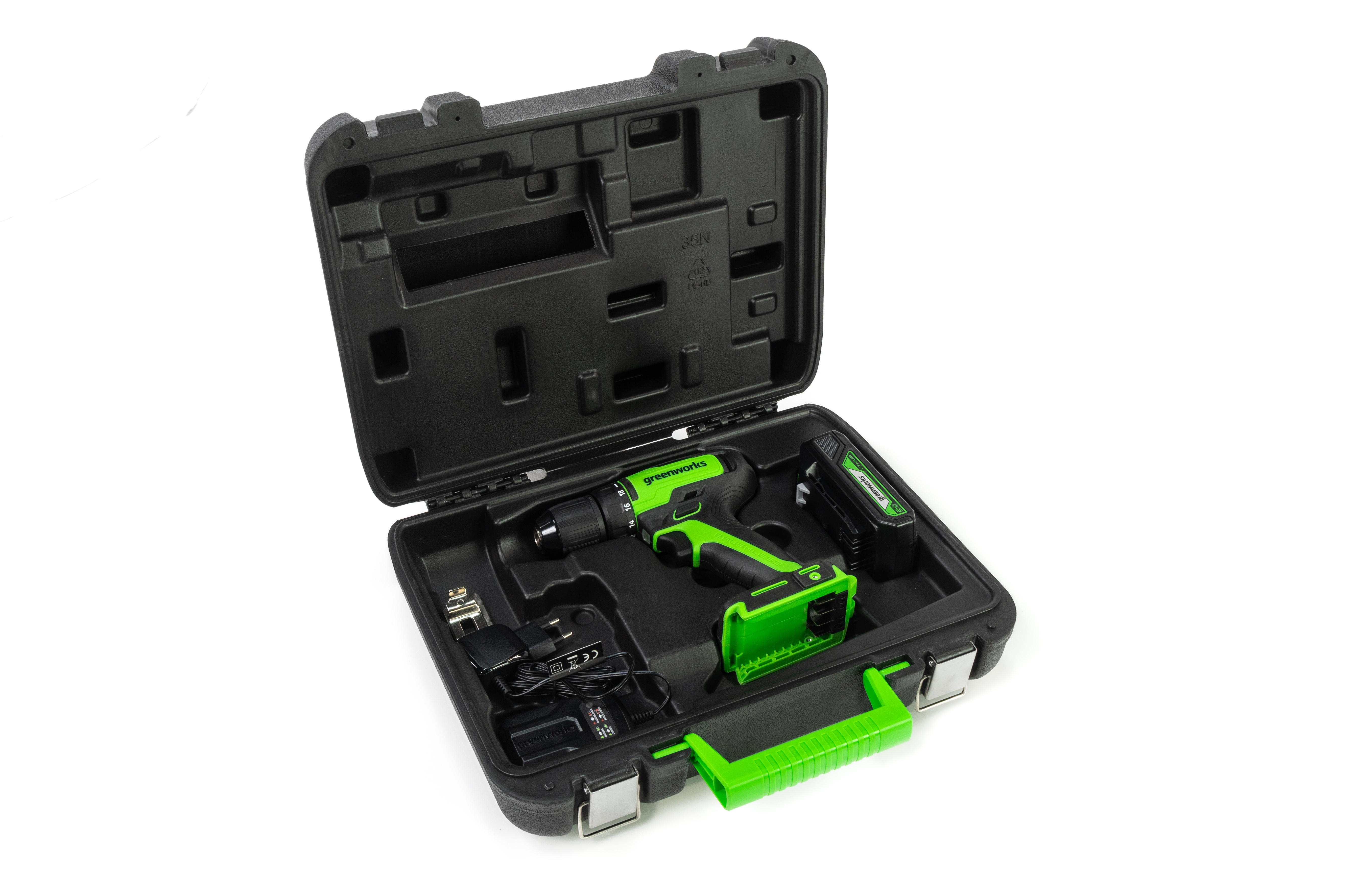 Дрель-шуруповерт аккумуляторная Greenworks GD24DD35K2 с АКБ 2 Ач и ЗУ в кейсе
