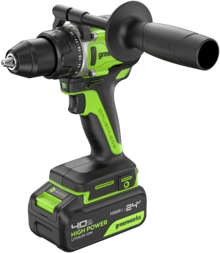 Дрель-шуруповерт аккумуляторная Greenworks GD24DD90 с 2 АКБ 4 Ач и ЗУ. Дрель-шуруповерт сочетает в себе три функции: сверление с ударом, сверление без удара и работа с крепежами. Это позволяет использовать устройство в работе с самыми разными материалами, а функция реверса дает возможность не только закручивать, но и выкручивать крепежи. Модель развивает исключительно высокий крутящий момент 90 Нм и оснащено дополнительной рукояткой для работ, требующих усилий, поэтому дрель справится не только с бытовыми, но и с более сложными задачами.