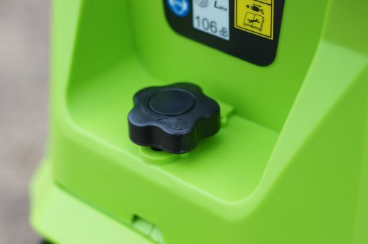 Колеса измельчителя позволят удобно перемещать по участку. Модель оснащена вместительным пластиковым контейнером объемом 40 л. В целях безопасности измельчитель имеет класс защиты IPX4, что предохраняет устройство от прямых брызг воды.
