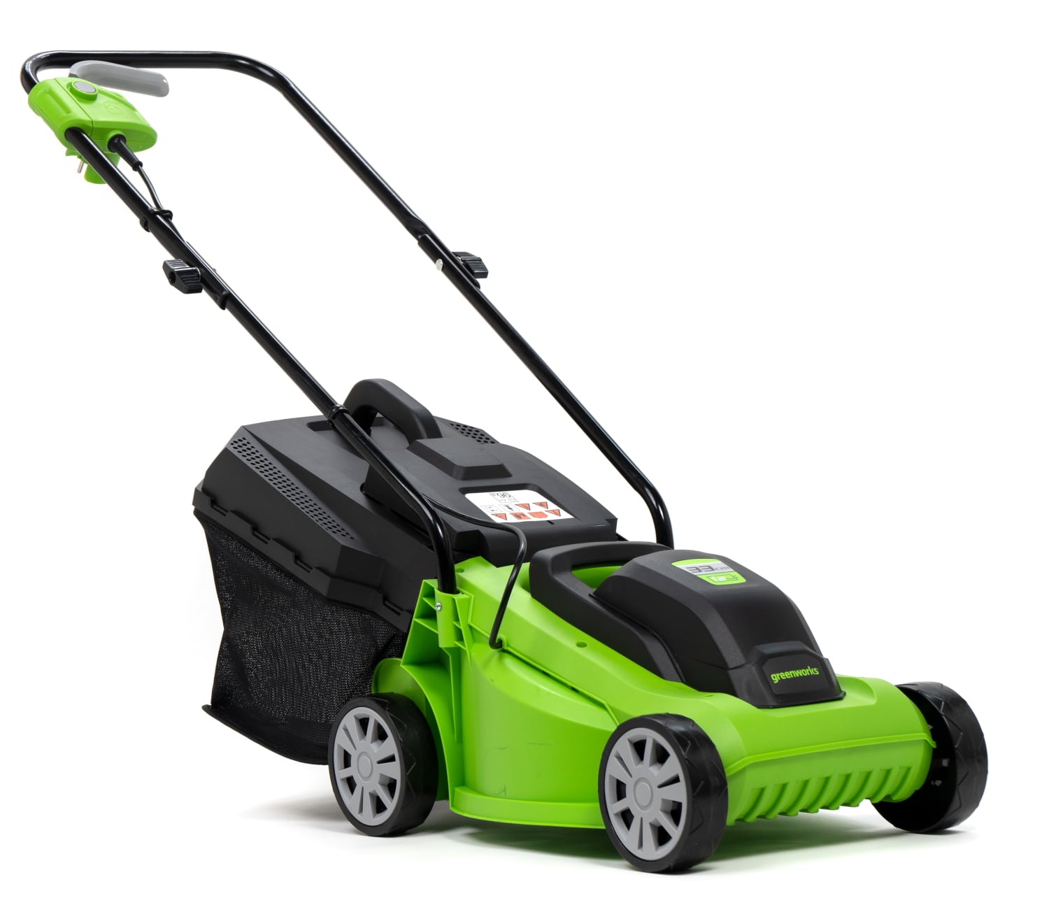 Газонокосилка электрическая Greenworks 1200W 33 см — лёгкая, мощная и маневренная газонокосилка отлично подойдет для извилистых участков. На этой модели установлен мощный двигатель на 1200 Ватт, а ширина скашивания 33 см. Косилка сочетает в себе 2 функции — мульчирование и сбор травы в травосборник. Травосборник объемом 25 литров, имеет гибридное строение — надежный каркас и складывающийся мешок. Таким образом им удобно пользоваться и при этом он не занимает много места при хранении.