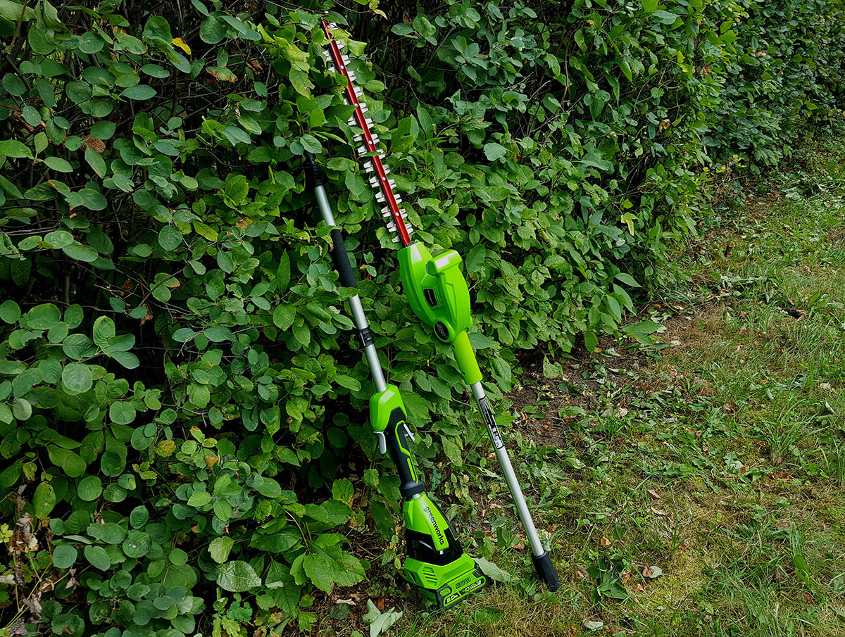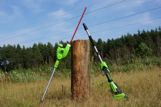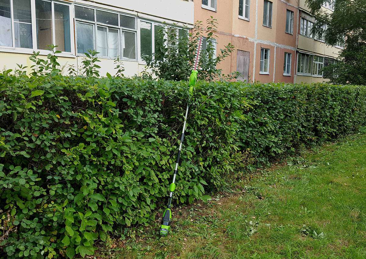 Кусторез штанговый аккумуляторный Greenworks G40PHA — отличная замена электро- или бензиновому кусторезу, он с легкостью справиться с подрезкой деревьев, кустарника или живой изгороди на достаточной высоте.