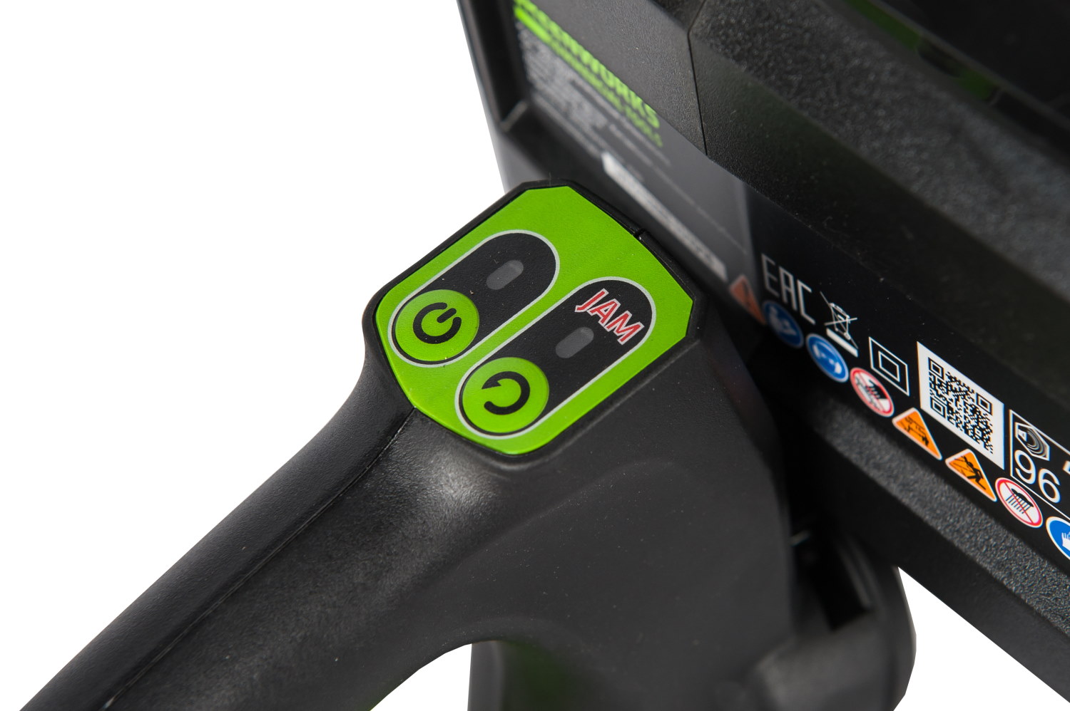 Долгое автономное время работы (до 80 минут от 5 А/ч батареи) и отсутствие необходимости использовать бензин и масло, протягивать за собой провод по участку - вот ключевые преимущества аккумуляторной техники. Эта модель оснащена предохранителем от случайного включения и защитным щитком от пореза рук (как на электропилах). Для долговечной работы двигатель имеет защиту от перегрузки.