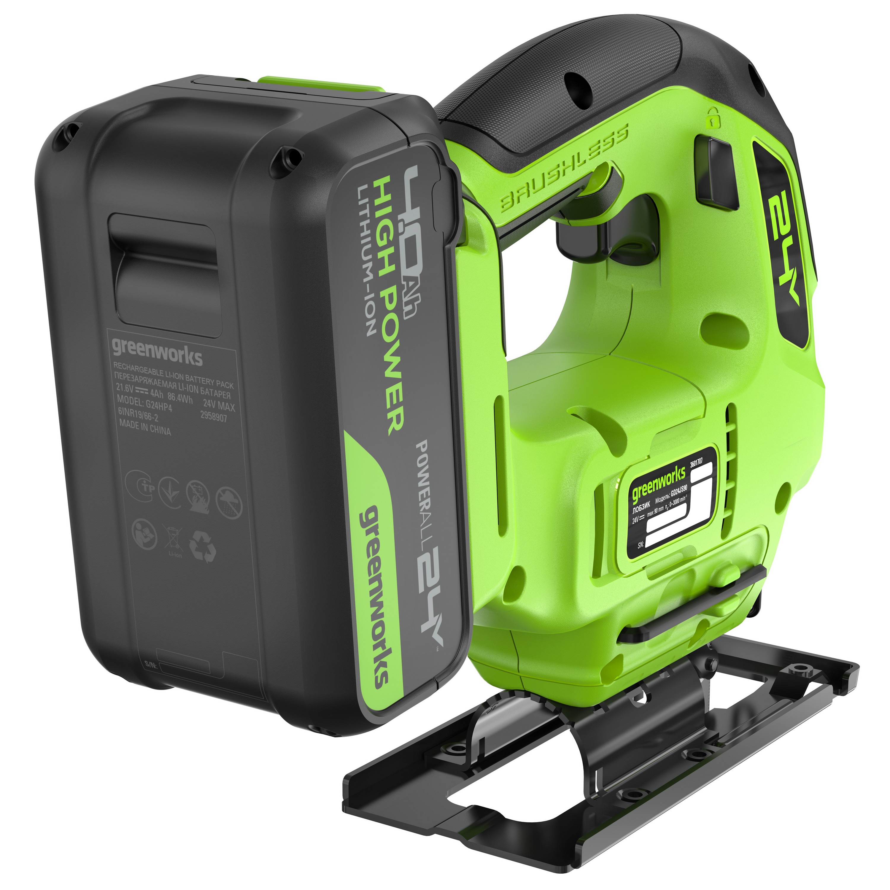 Лобзик аккумуляторный GreenWorks GD24JS90 24В с АКБ 4 Ач и ЗУ