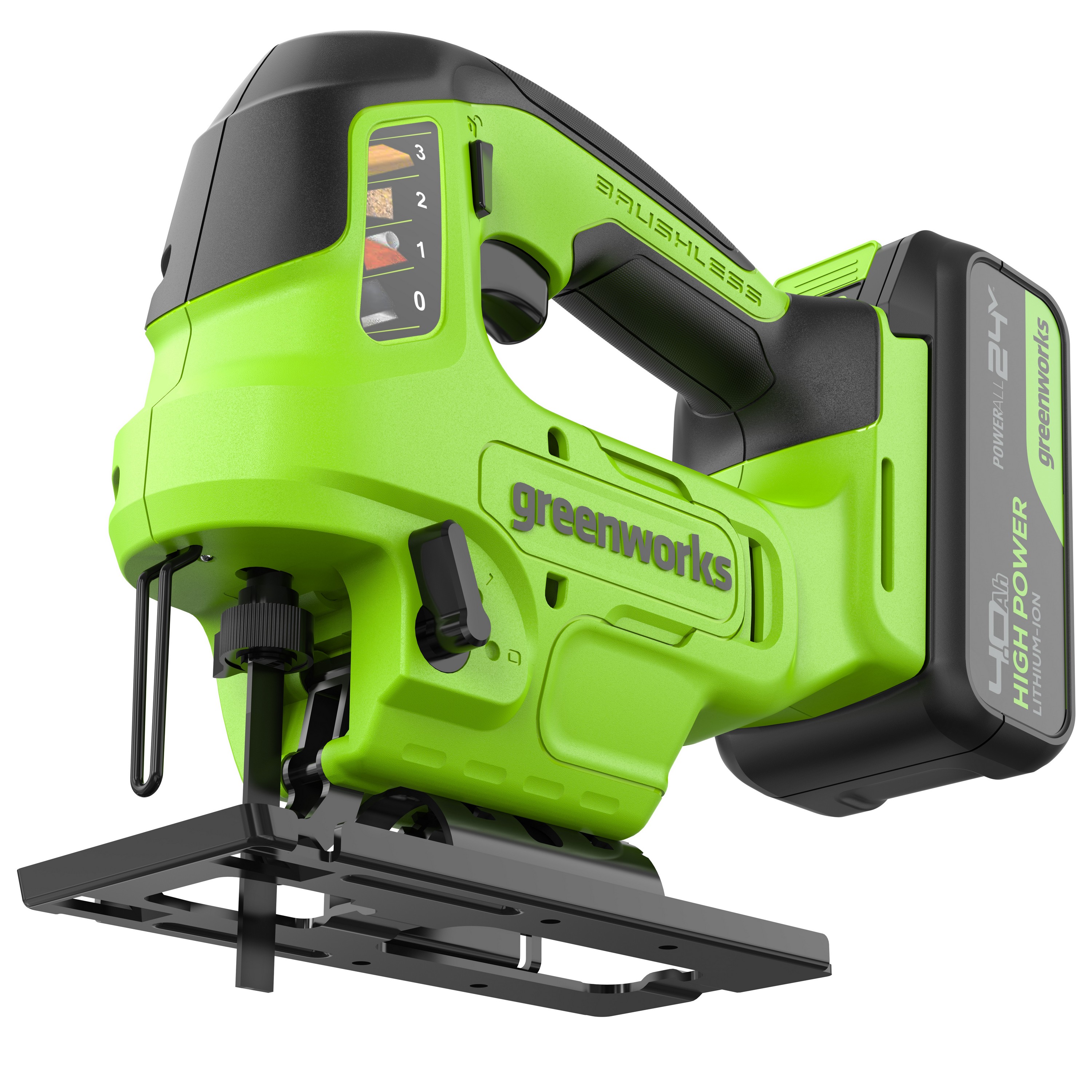 Лобзик GD24JS90 построен на основе мощного и надёжного бесщёточного двигателя DigiPro, который эффективно использует энергию аккумулятора и не теряет мощность под нагрузкой. Работой инструмента управляет Greenworks Intelligent Power – инновационная цифровая система контроля и управления батареей, инструментом и зарядным устройством обеспечивающая максимальную производительность и долгий срок службы. Максимум электронных помощников: плавный пуск, защита от перегрева / перегрузки – всегда точная, безопасная и комфортная работа лобзиком GD24JS90.
