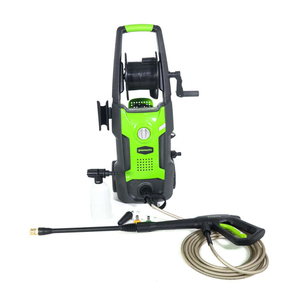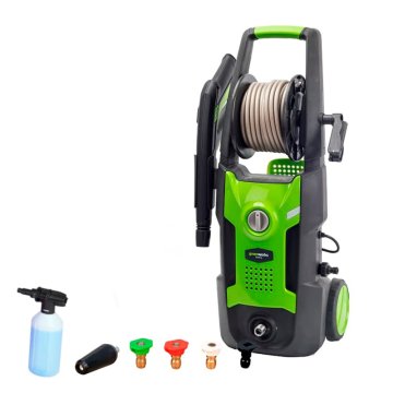Мойка высокого давления Greenworks GPWG4II 1800W — мойка из серии 230V с давлением до 130 бар, производительностью 420 л/ч для мойки транспортного средства, садового инвентаря и придомовых участков. Работает в вертикальном и горизонтальном положении.