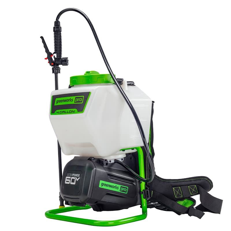 Садовый опрыскиватель Greenworks GW-BPS60 60V 5300107 аккумуляторный — опрыскиватель из серии 60V для полива и опрыскивания растений и огорода. Оснащен баком 15 л, максимальной производительностью 1,9 л/м и давлением 5 Бар. Отличный выбор для садоводов и обладателей больших огородов! Используется для борьбы с вредителями, сорняками и болезнями растений, а также для распыления удобрений и полива.