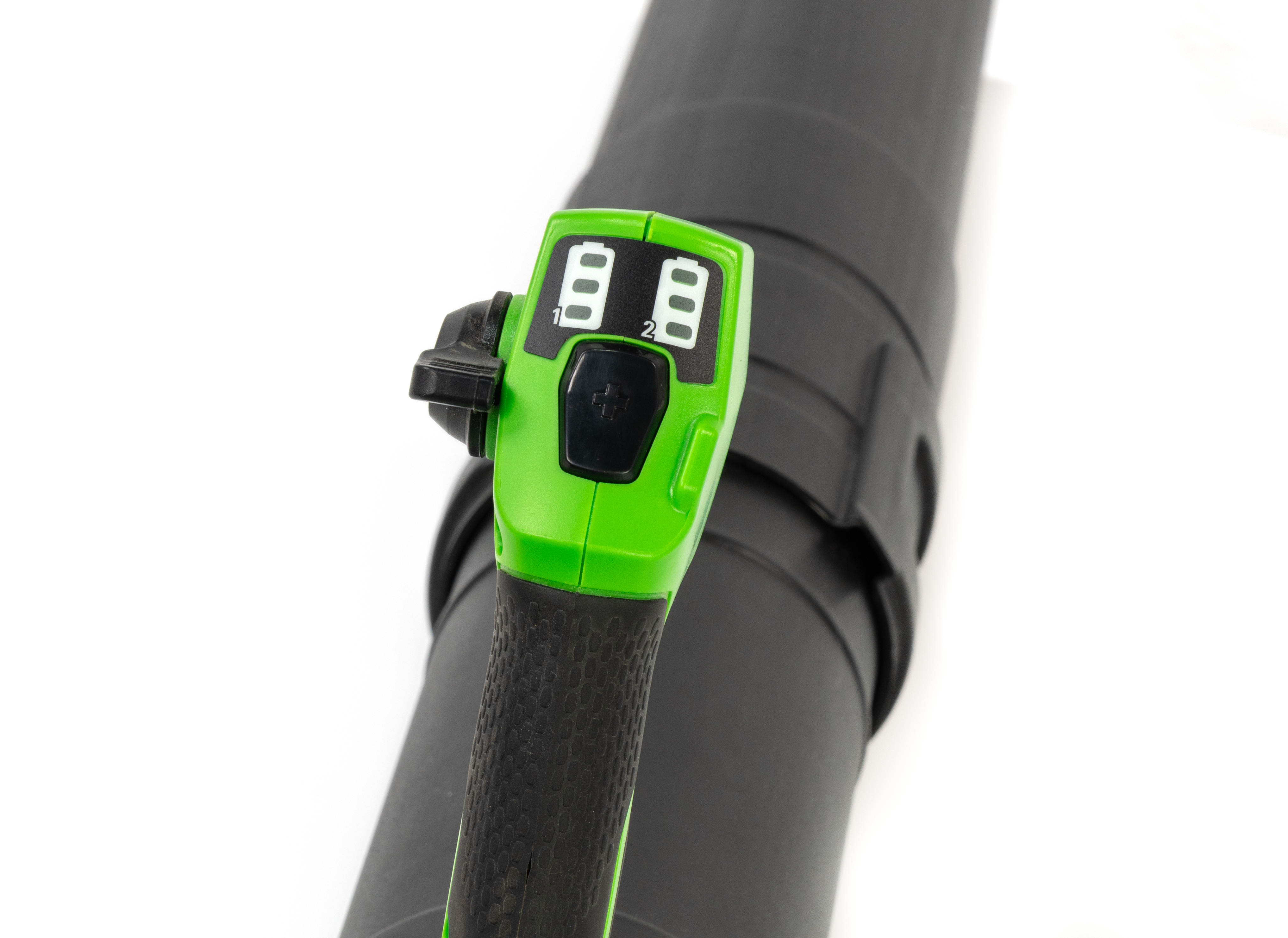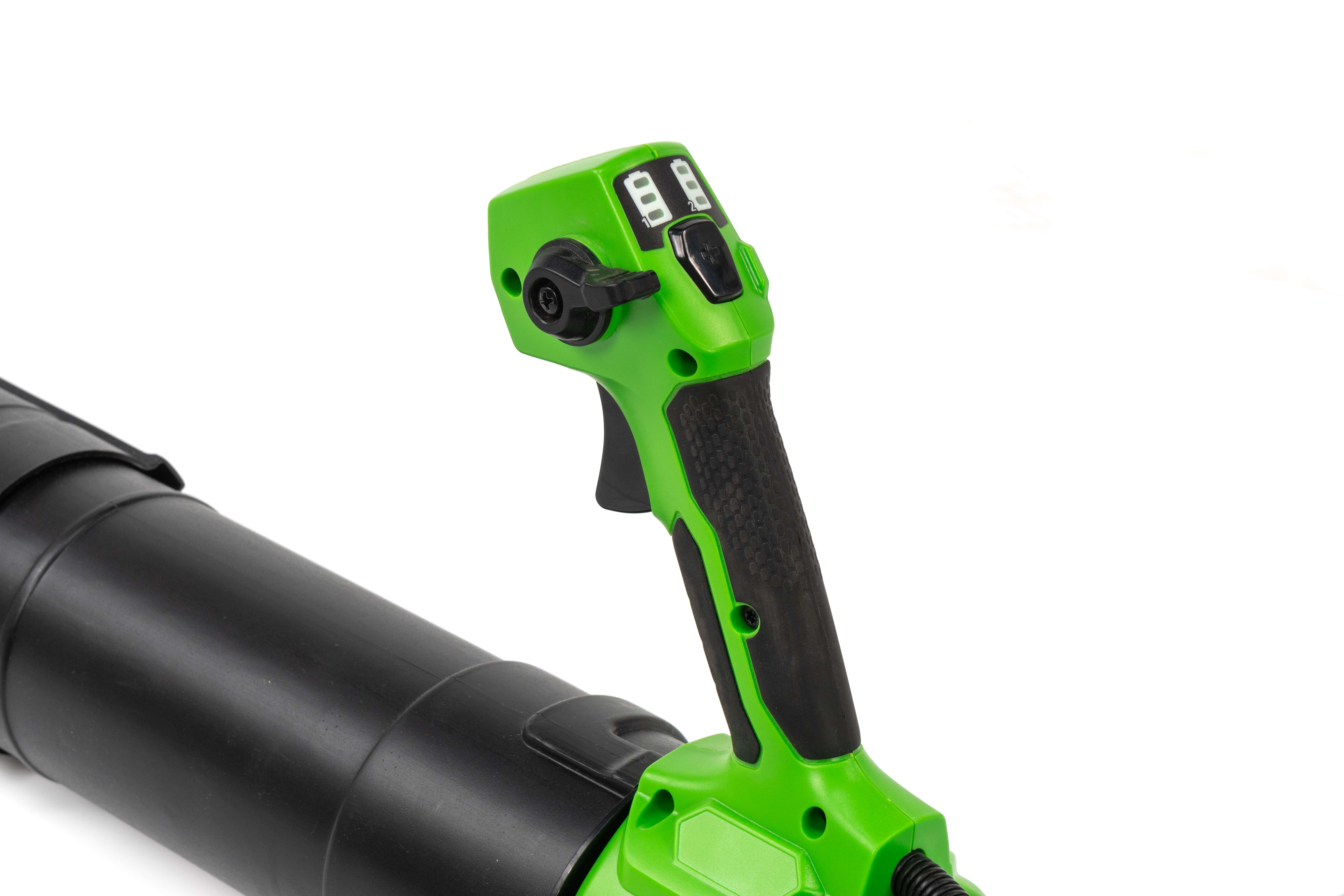 Воздуходувка имеет турбо режим и круиз контроль для оптимальной работы в различных задачах. Турбо режим подходит для наиболее интенсивной уборки, а круиз контроль — для стабильной скорости на средних оборотах.