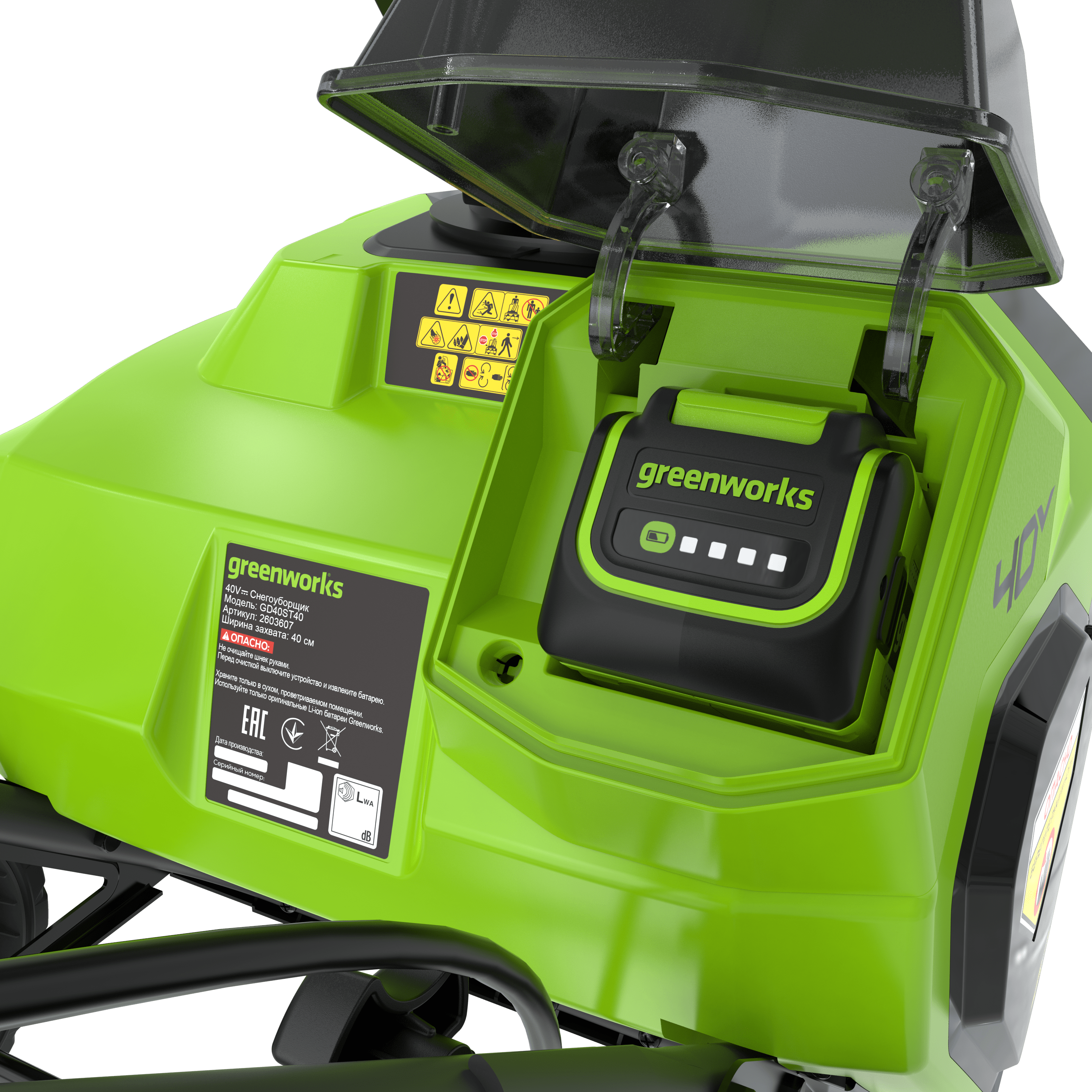 Отличительной чертой данной модели является её экологичность и тихая работа: она не требует бензина, не производит вредных выбросов, не нуждается в проводах и лишена вибрации. Запуск осуществляется простым нажатием кнопки, избавляя от необходимости возиться с топливом, стартером или сложным обслуживанием. Для облегчения перевозки ручка и желоб легко снимаются, позволяя компактно упаковать снегоуборщик в багажник машины. Устройство питается от батарей 40V, которые можно использовать со всеми инструментами Greenworks G-MAX 40V. Ассортимент этой серии настолько разнообразен, что в нём найдутся решения для практически любых задач в саду.