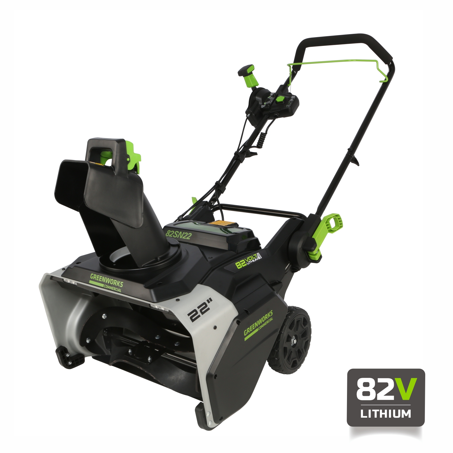 Снегоуборщик Greenworks 82SN22 82V (56 см) 2603307 бесщеточный аккумуляторный — снегоуборщик из серии 82V для очистки средних и больших участков. Имеет ширину шнека 56 см, дальность выброса до 9 м. Оснащен 2 слотами для батарей, бесщеточным двигателем.