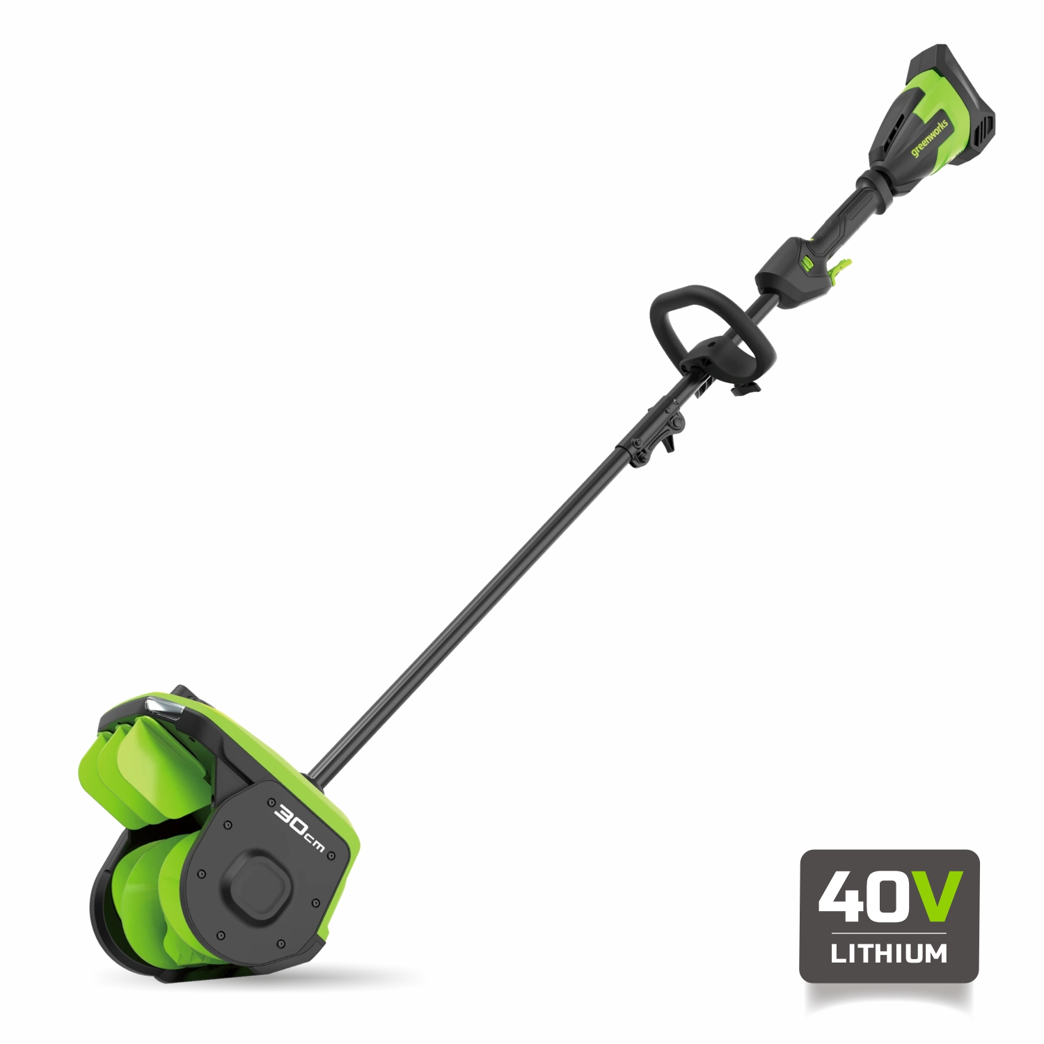 Снегоуборочная лопата Greenworks GD40SS2 40V 2603107 (30 см) с регулируемым направлением выброса бесщеточная аккумуляторная — лопата из серии 40V для облегчения уборки территорий от снега. Имеет ширину шнека 30 см. Оснащена бесщеточным двигателем и регулировкой выброса снега.
