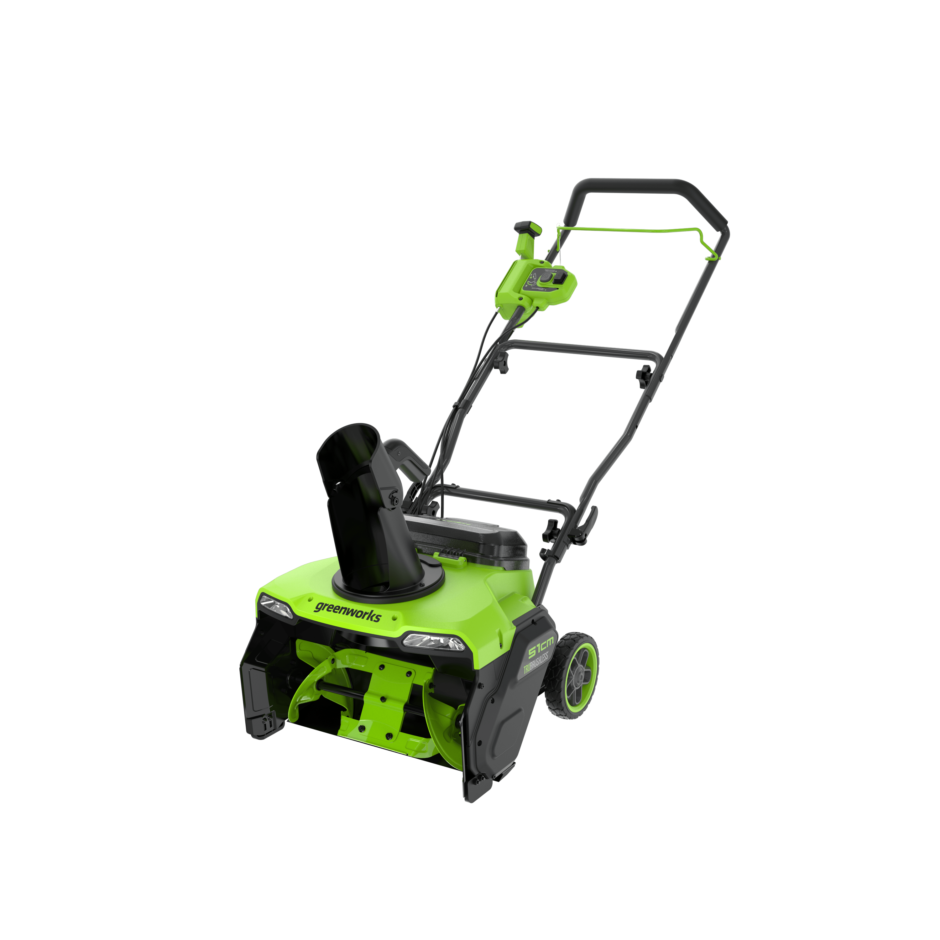 Две яркие LED фары делают комфортной работу в условиях недостаточной освещенности. Снегоуборщик отличается простотой в использовании: запуск производится одним нажатием кнопки, избавляя от необходимости сложной работы с топливом, дросселем и стартером. Конструкция не предусматривает замену фильтров и свечей, что максимально упрощает эксплуатацию. Современный бесщеточный двигатель устойчив к износу, долговечен, прост в обслуживании, экологичен и характеризуется низким уровнем шума и вибрации. Питание осуществляется от аккумуляторов 40V, совместимых со всей линейкой Greenworks G-MAX 40V, предлагающей широкий спектр инструментов для различных садовых задач.