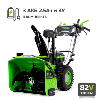 Снегоуборщик аккумуляторный Greenworks GD82ST56 82V с 3 АКБ 2.5 Ач и ЗУ