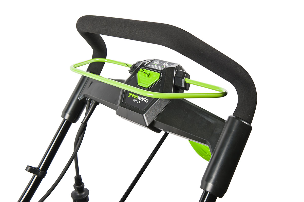 Снегоуборщик электрический Greenworks GST1851 — старшая модель в серии 230V электрических снегоуборщиков Greenworks. Идеально подходит для очистки от снега средних по площади территорий, например перед домом или около гаража, беседки, террасы, а также подойдет для расчистки пеших дорожек.