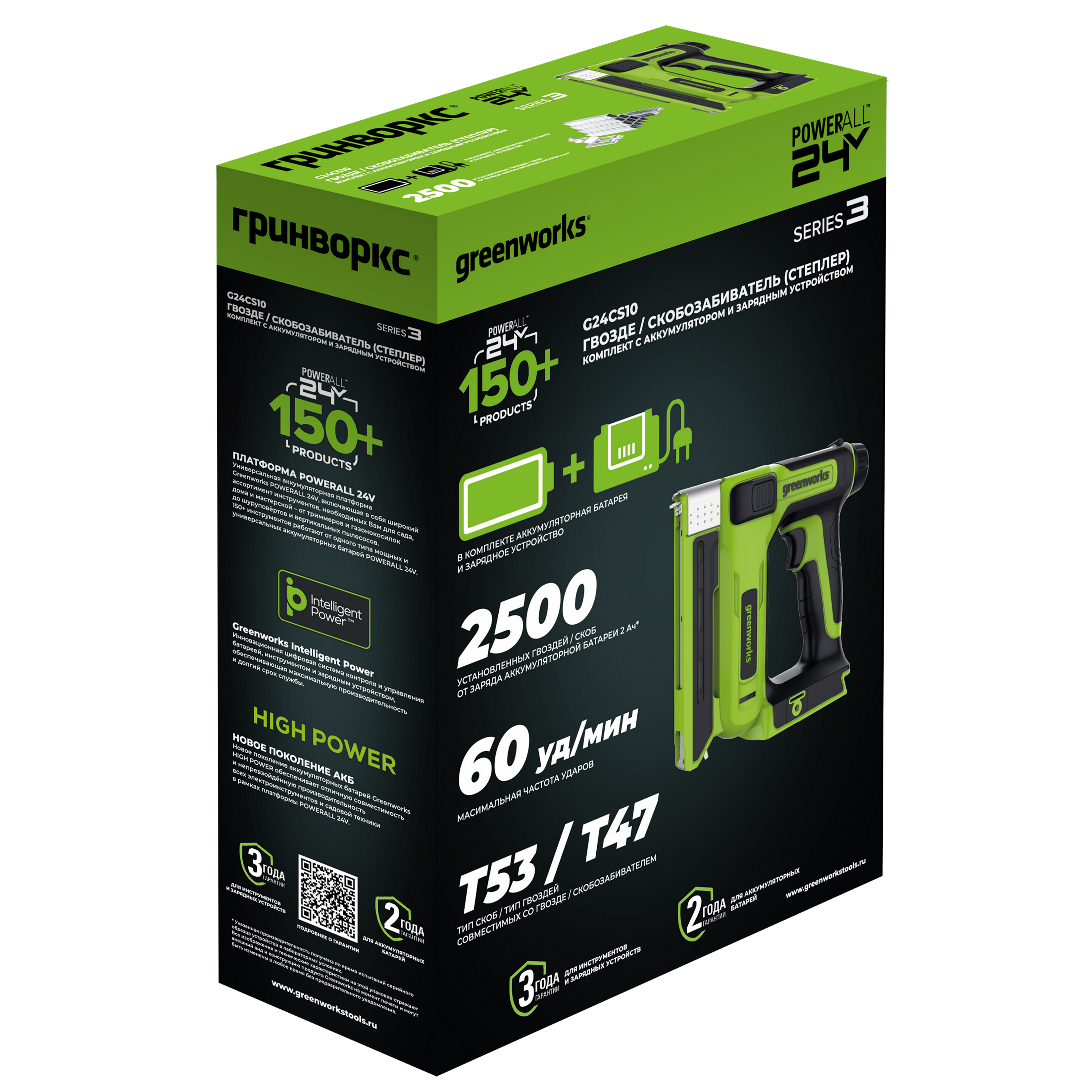 Степлер аккумуляторный Greenworks G24CS10 24В с АКБ 2 Ач и ЗУ