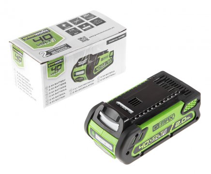 Триммер работает от Li-Ion аккумуляторной батареи G-MAX 40V (2 А/ч или 4 А/ч), которую можно использовать со всеми другими устройствами линейки 40 вольт (15+ устройств).