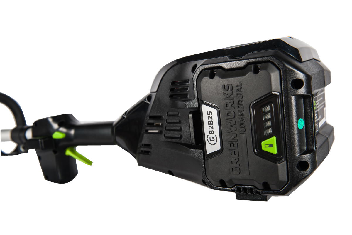 Удобная передняя рукоятка позволит легко управлять триммером. Эта модель моментально готова к работе нажатием одной кнопки. Благодаря питанию от 82V аккумулятора триммер обеспечивает долгую автономную работу. Данный аккумулятор совместим с другими устройствами из линейки 82V Commercial. Для безопасной работы триммер оснащен кнопкой включения и предохранителем.