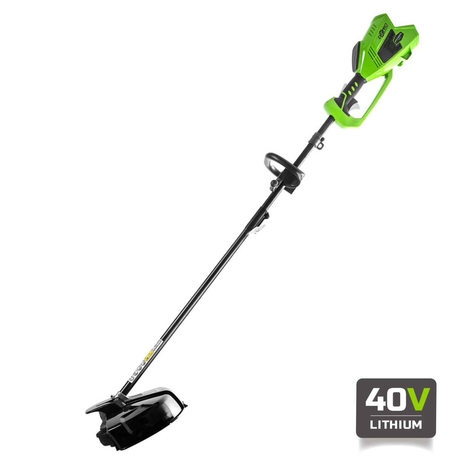 Эта модель имеет наплечный ремень, а также эргономичный дизайн рукоятки с упором в предплечье. Долгое автономное время работы (до 80 минут от 4 А/час батареи) и отсутствие необходимости использовать бензин и масло, переносить за собой провод боясь его порезать - вот ключевые преимущества этого триммера. Данная модель оснащена предохранителем от случайного включения и защитным кожухом режущей части. Для долговечной работы двигатель имеет защиту от перегрузки, вал между двигателем и режущей частью - прямой и выполнен из стали. Триммер работает от аккумуляторной батареи G-MAX 40V, которую можно использовать с другими устройствами (15+ устройств) линейки 40V.