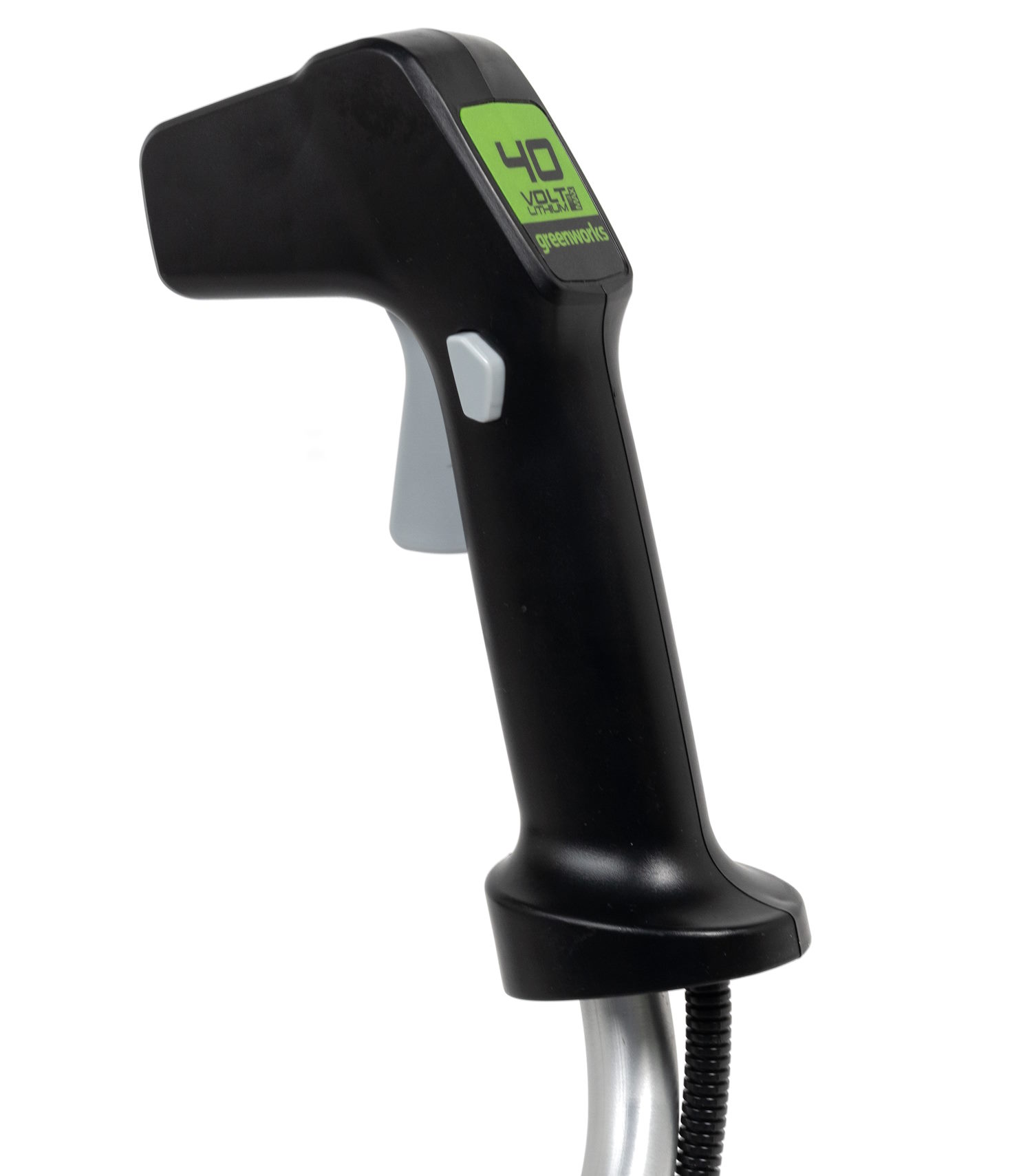 Эта модель имеет наплечный ремень, а также эргономичный дизайн рукоятки с упором в предплечье. Долгое автономное время работы (до 80 минут от 4 А/час батареи) и отсутствие необходимости использовать бензин и масло, переносить за собой провод боясь его порезать - вот ключевые преимущества этого триммера. Данная модель оснащена предохранителем от случайного включения и защитным кожухом режущей части. Для долговечной работы двигатель имеет защиту от перегрузки, вал между двигателем и режущей частью - прямой и выполнен из стали. Триммер работает от аккумуляторной батареи G-MAX 40V, которую можно использовать с другими устройствами (15+ устройств) линейки 40V.