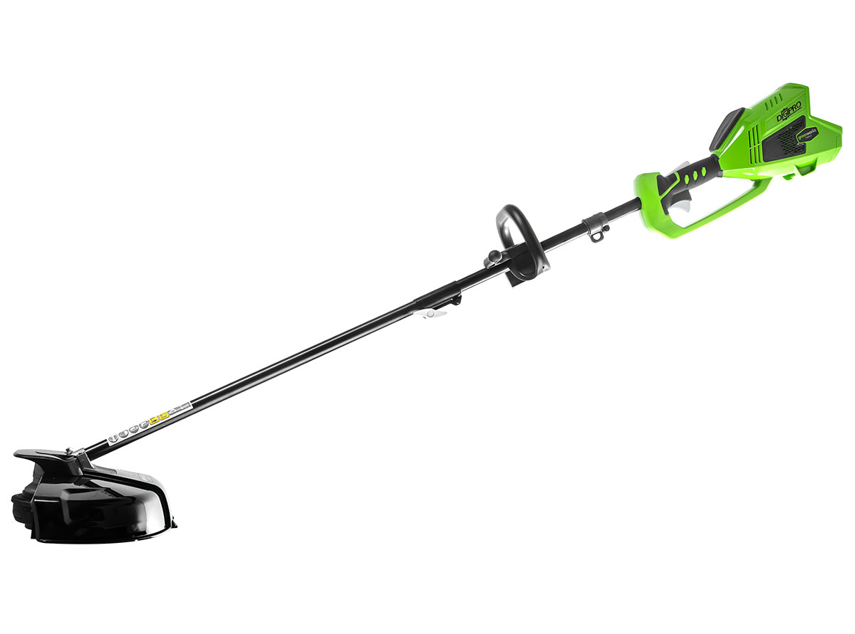 Это полупрофессиональный триммер, который отлично подойдет для ведения дачного хозяйства. Модель оснащена надежным бесщеточным двигателем DigiPro, сопоставимым по мощности с бензиновыми аналогами, при этом он абсолютно экологичен, имеет высокий крутящий момент, низкий уровень шума и вибраций, а так же прост в эксплуатации. Включение триммера производится одной кнопкой, основное применение - подрезка травы в труднодоступных для газонокосилки местах, а также подрезка кустарника.