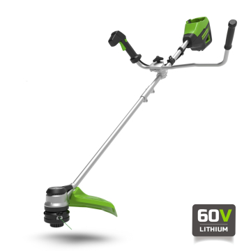 Greenworks GD60BCB - лёгкий, но удивительно мощный триммер, предназначенный для проведения работ на средних и больших садовых участках. Высокая производительность и увеличенное время работы триммера , а также отсутствие выбросов СО2, вибрации и шума обусловлены использованием аккумуляторной батареи 60В, разработанной по новейшим технологиям, что превращает устройство в прекрасный аналог инструментам, работающим на бензине.