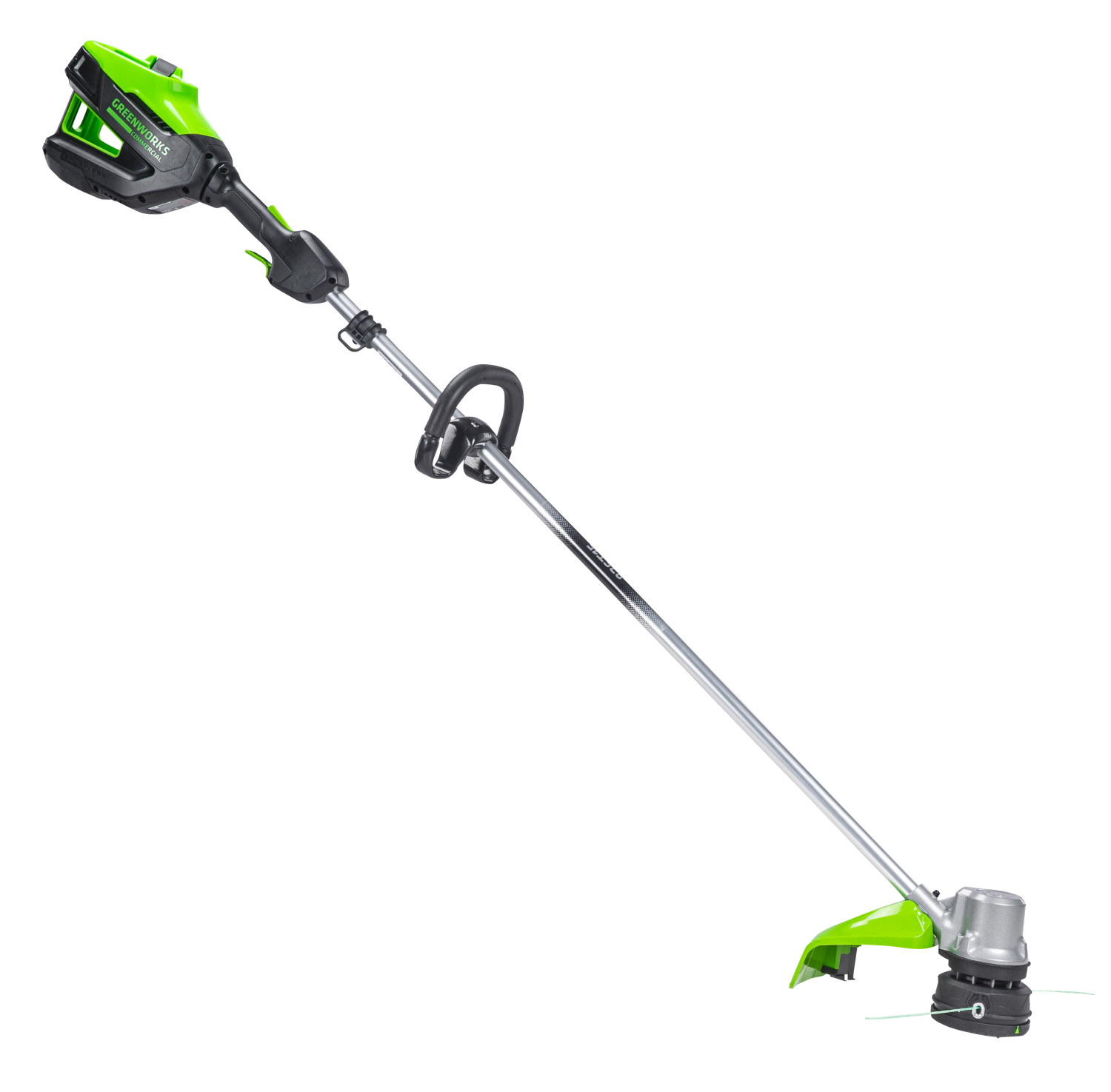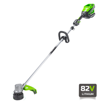 Триммер аккумуляторный Greenworks GD82LT бесщеточный, без АКБ и ЗУ из линейки профессиональной техники 82V Greenworks Commercial 82V. Ширина скашивания 40 см, модель отлично подойдет для ведения дачного хозяйства, покоса обширных площадей коммунальными организациями. Леска 2,4 мм с ударной подачей из катушки с легкостью справится с высокой и густой травой.