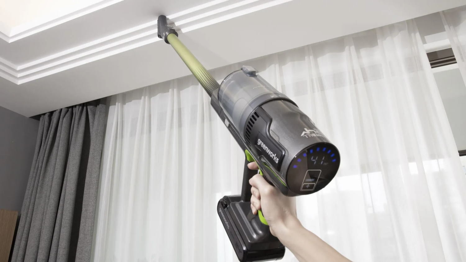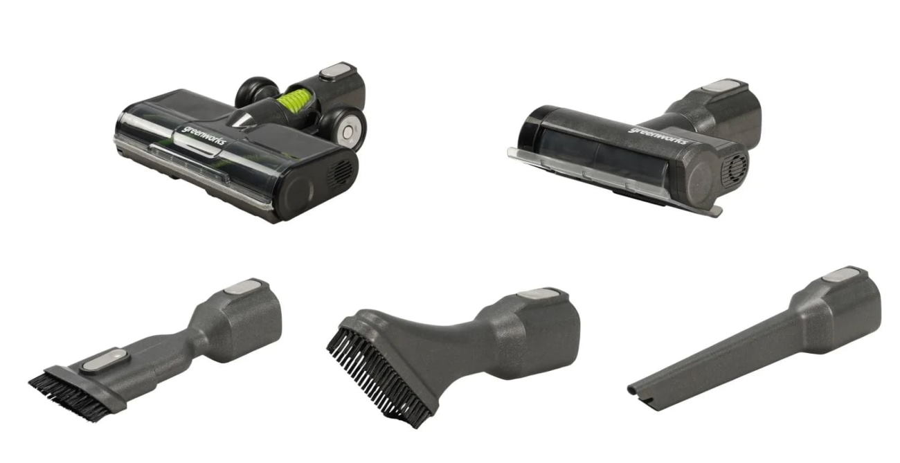 Пылесос вертикальный Greenworks 24V 4701407 (500 Вт) аккумуляторный — пылесос серии 24V мощностью 500 Вт с бесщеточным двигателем, контейнером 0,5 л и LED-дисплеем.