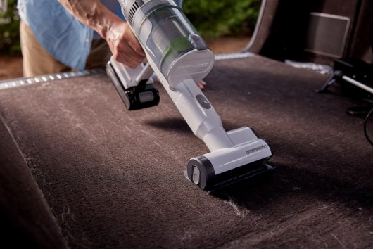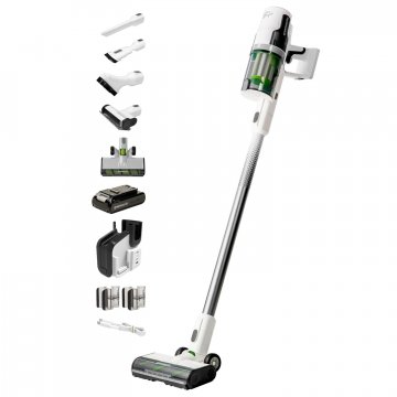 Модель можно использовать и как вертикальный, и как ручной пылесос. Мощность 500 Вт и расход воздуха 21 л/с обеспечивают высокую производительность инструмента. Пылесос работает до 45 минут на одном заряде аккумулятора и заряжается всего за 30 минут. Для удобства использования пылесос оснащен LED-дисплеем с индикацией оставшегося времени работы, подсветкой на щетке для уборки мест с низкой освещенностью и 3 специальных клипсы для хранения насадок. Также в комплекте идет зарядная база на подставке с 3 USB-портами для зарядки мобильных устройств ( 2 x USB-C; 1 x USB-A).