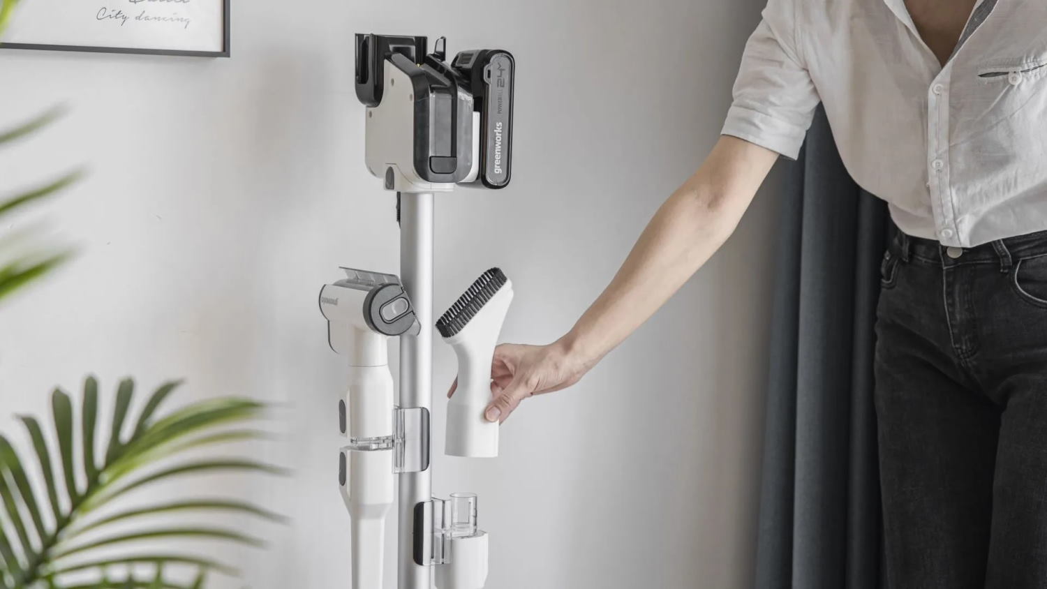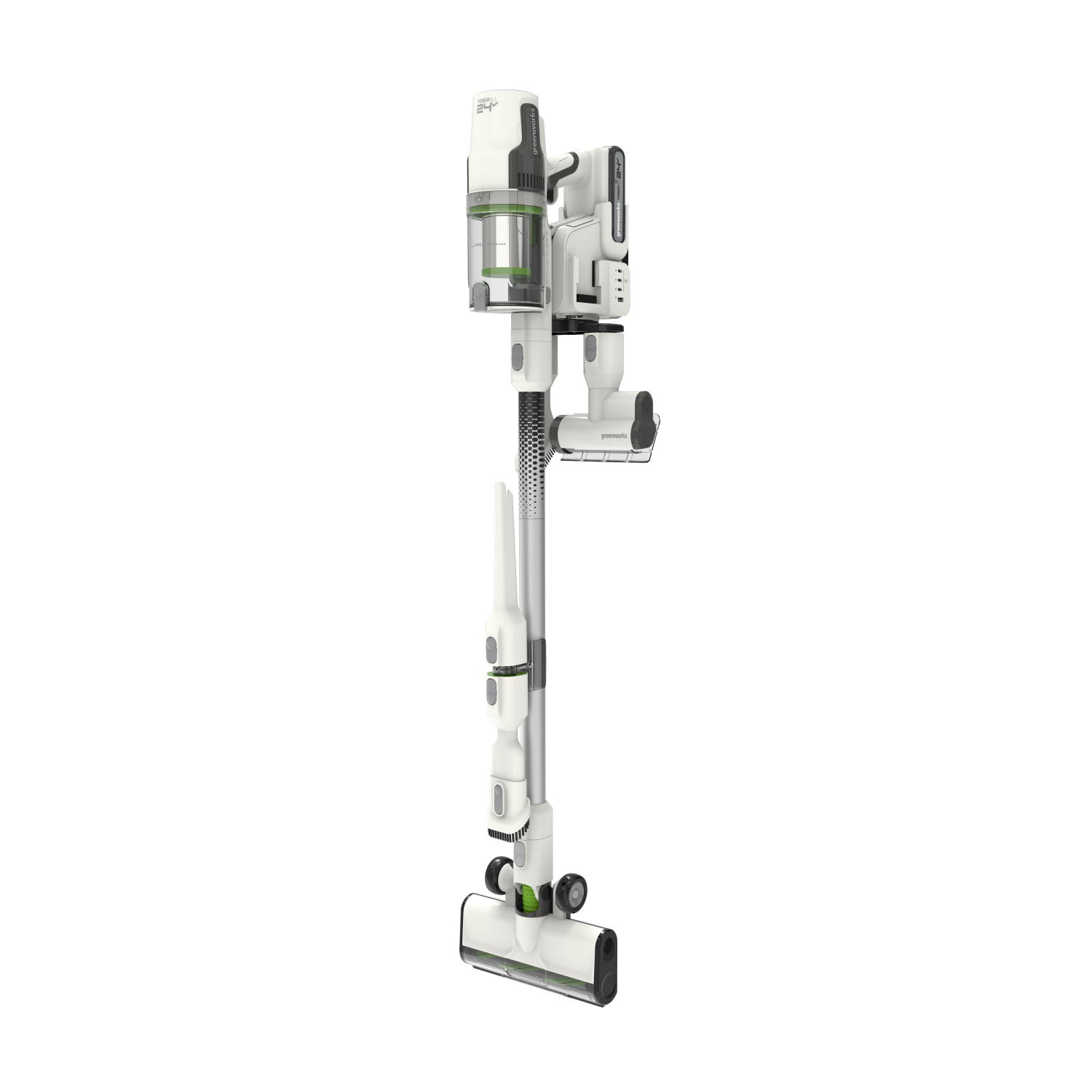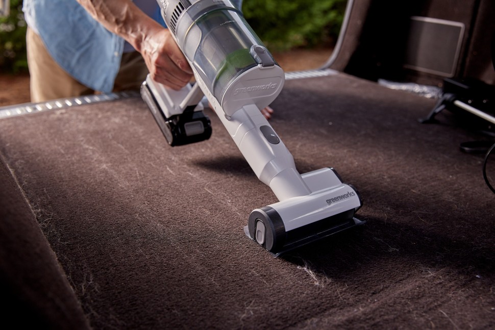 Пылесос беспроводной вертикальный аккумуляторный Greenworks 24В G24SVK4D, Арт.4701107UB с АКБ 4 А*ч и ЗУ - новинка 2022 года! Мощный пылесос премиум класса - два-в-одном: вертикальный пылесос и ручной пылесос. Пылесос эффективно справляется с уборкой и имеет полный комплект насадок для различных задач: универсальная электрощетка, мягкая электрощетка для твердого пола, мини-электрощетка для уборки шерсти животных, щелевая насадка, насадка-щетка, насадка 2-в-1 (удобна для уборки в салоне автомобиля).