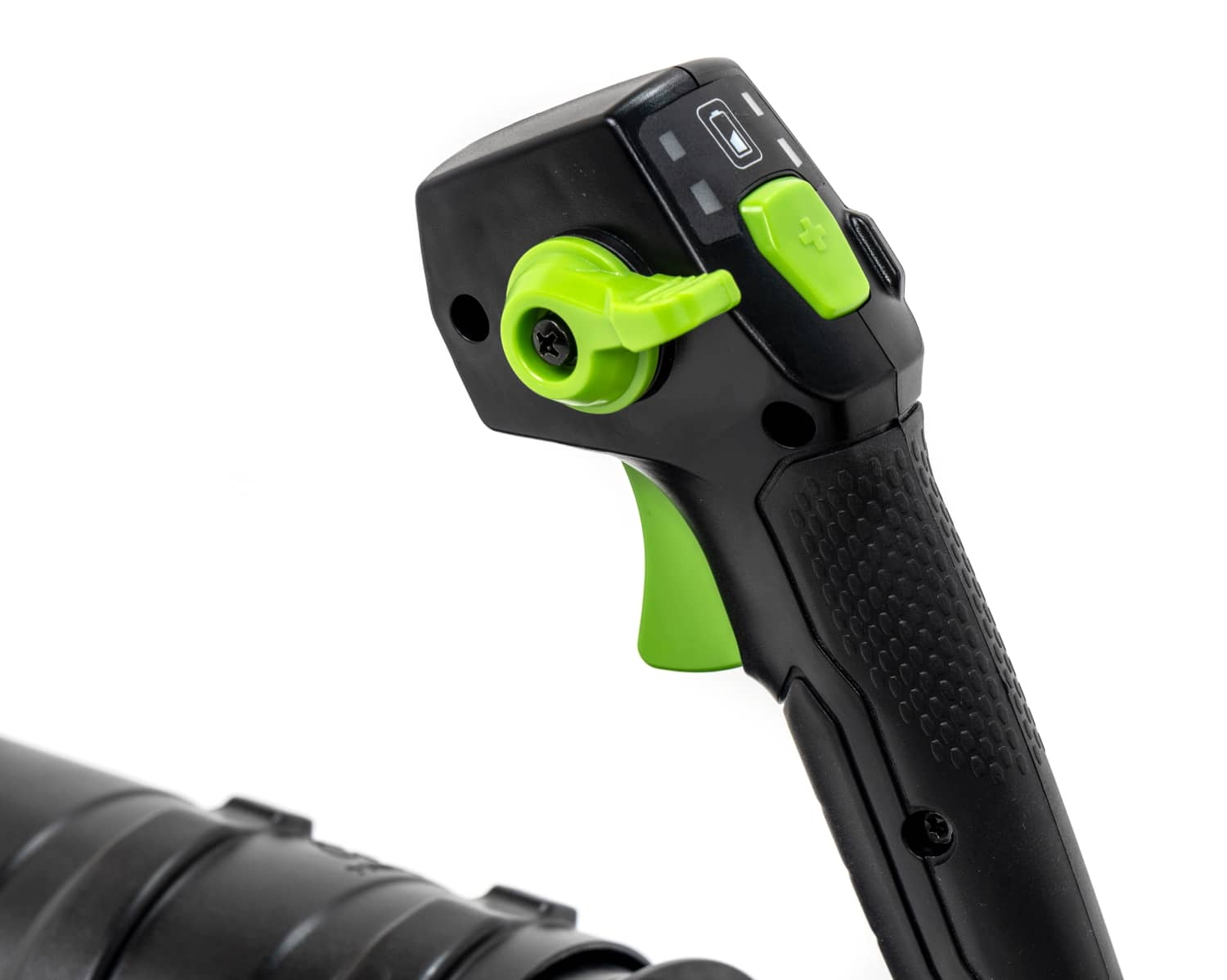 Скорость потока воздуха плавно регулируется с помощью соответствующего рычага. Устройство имеет турбо режим, включающийся специальной кнопкой. Он переключает устройство на максимальную скорость работы. Двигатель оснащен защитой от перегрузок, а значит прослужит гораздо дольше. С помощью круиз-контроля вы сможете установить скорость вентилятора на необходимом уровне, для облегчения управления.
