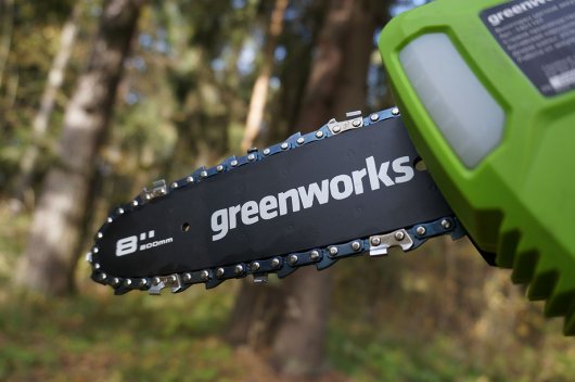 Аккумуляторный высоторез-сучкорез Greenworks G40PSF — с легкостью справиться с обрезкой ветвей и сучьев на высоте до 4-х метров.