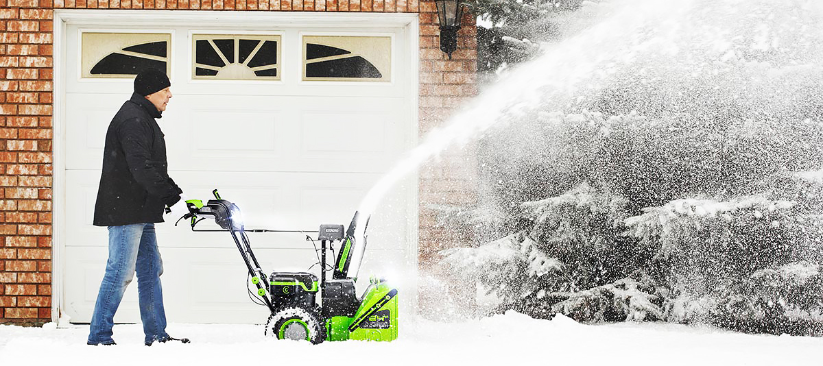 Аккумуляторный снегоуборщик Greenworks удобен тем, что в отличие от бензиновых моделей не требует запуска стартера и приготовления топливно-масляной смеси. Просто вставьте АКБ, нажмите «пуск» и начните работать. Хотим обратить внимание только на одну деталь. Снегоуборочная машина не должна храниться в холодном помещении, так как батареи быстро теряют емкость при низких температурах.