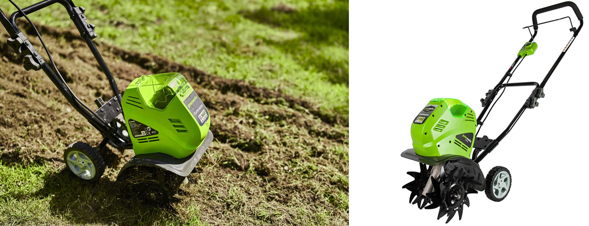 Агрегаты с аккумуляторами гораздо экологичнее. Например, при использовании культиватора G-MAX 40V GREENWORKS G40TL вы не будете вдыхать ядовитые пары, и работа превратится в приятную прогулку. К тому же управлять культиватором легко: он эффективно рыхлит почву на глубине до 20 см. Аккумулятора устройства хватает на 30 минут беспрерывной работы. Особенно важно отметить, что с этим устройством вы сможете производить культивацию даже в закрытых местах, например, в теплицах.
