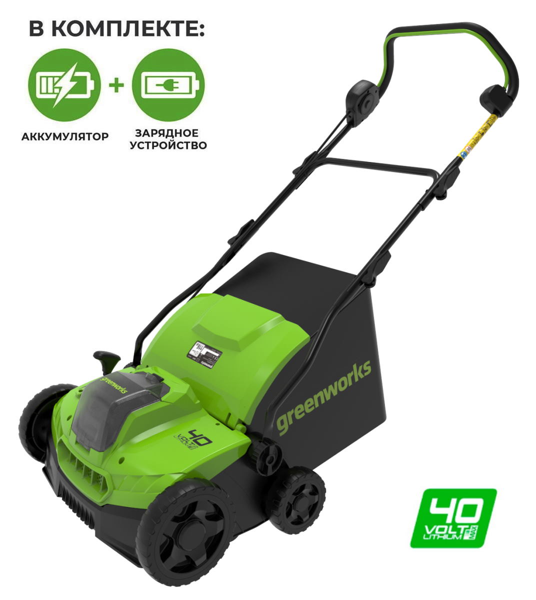 Аэратор аккумуляторный Greenworks GD40SC36 с АКБ 4 Ач и ЗУ