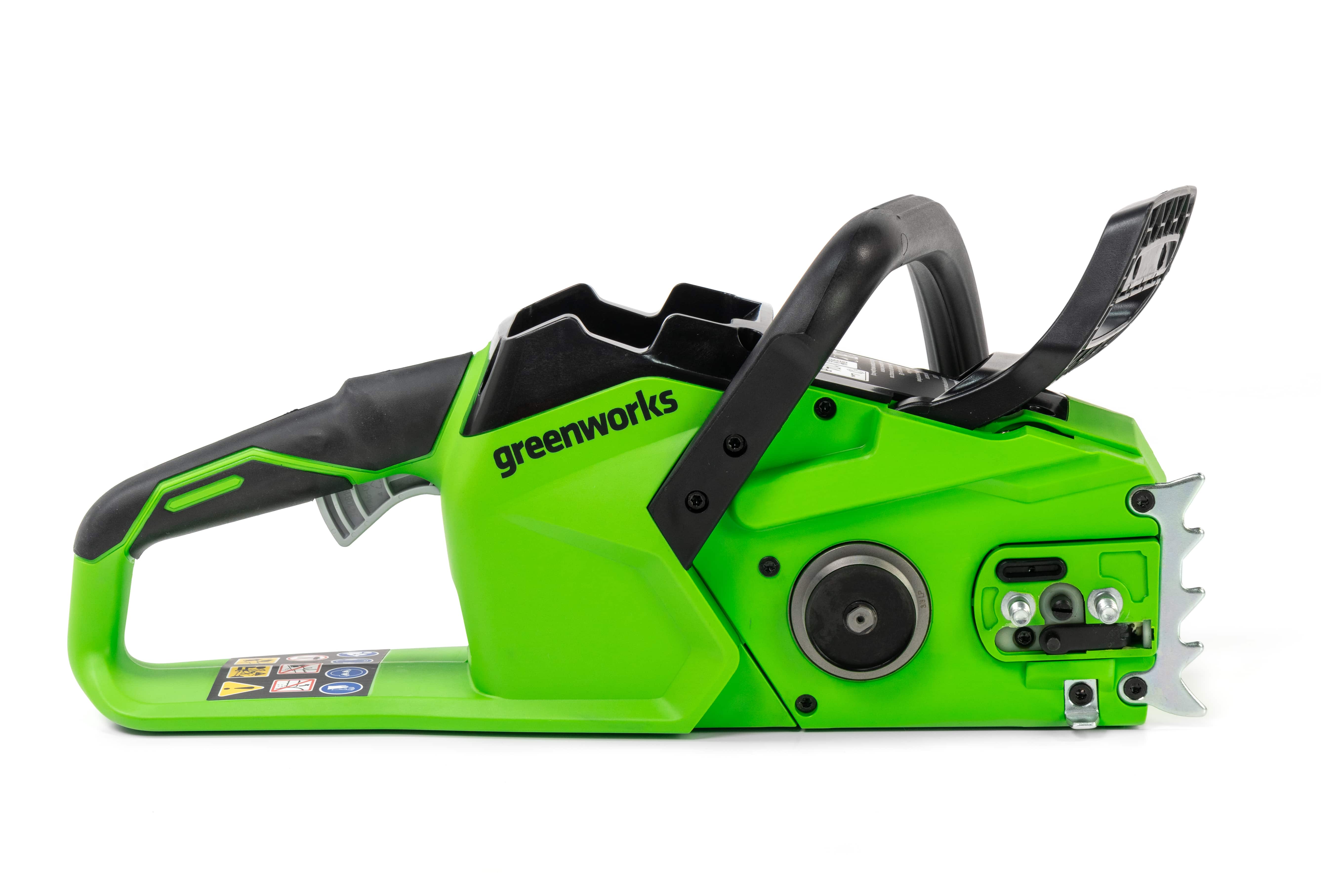 Для безопасности предусмотрен предохранитель включения и механический тормоз цепи. Двигатель имеет защиту от перегрузки, механический тормоз цепи, мгновенная остановка цепи, металлические упоры. Нескользящая эргономичная рукоятка и выключатель с защитой от случайного включения. Натяжение и замена цепи с ключом, защита двигателя от перегрузки. Масса без АКБ и ЗУ: 4 кг. Аккумулятор совместимый с 50+ моделями инновационного садового инструмента платформы Greenworks 40V. Гарантия на инструмент 3 года. Гарантия на АКБ 2 года.