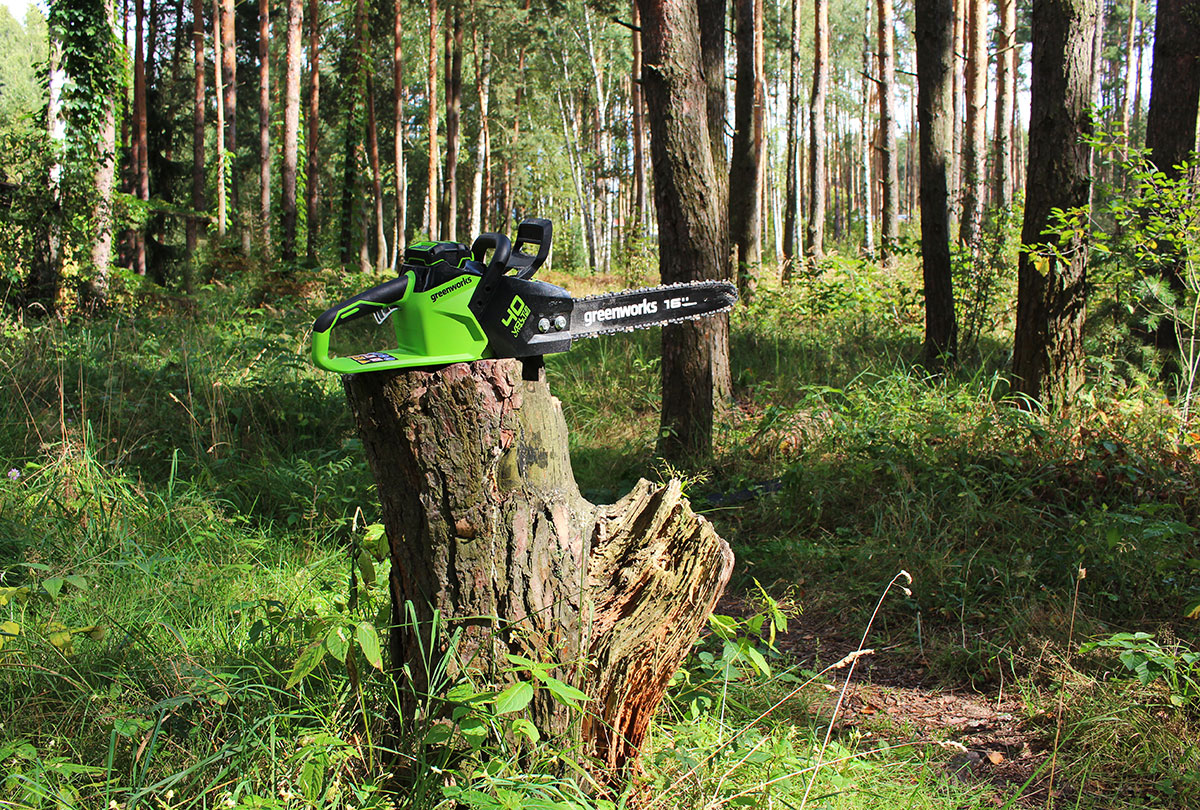 Аккумуляторная пила Greenworks GD40CS18K8 с АКБ 8 Ач и ЗУ — отлично подойдет для полноценного ведения дачного хозяйства. Ее надежный бесщеточный двигатель сопоставим по мощности с бензиновыми аналогами на 1,5 л. с. При этом электродвигатель пилы Greenworks абсолютно экологичен, имеет высокий крутящий момент (пилит быстрее бензинового аналога), имеет низкий уровень шума и вибраций, а так же прост в эксплуатации потому, что не требует подготовки масло-бензиновой смеси и какого-либо обслуживания. Включение пилы производится одной кнопкой. Замена и установка цепи не требует инструмента.
