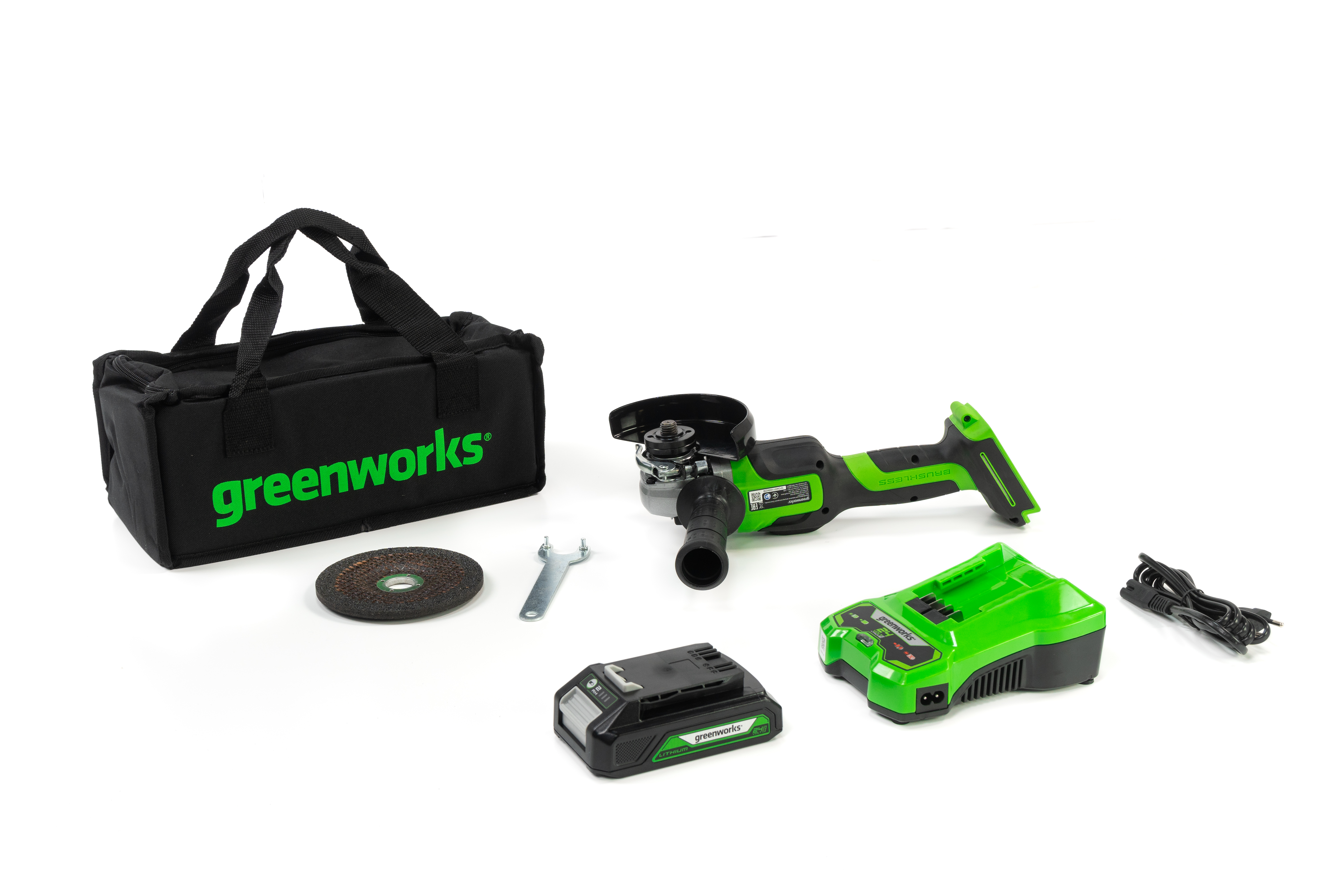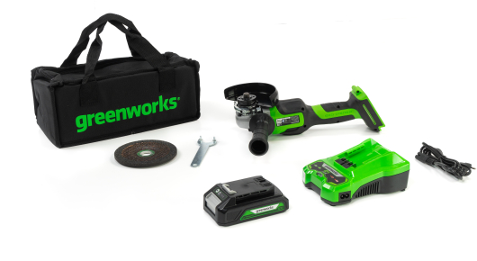 Аккумуляторная угловая шлифмашина Greenworks GD24AG с АКБ 2 Ач и ЗУ с сумкой