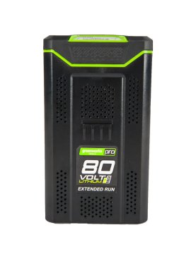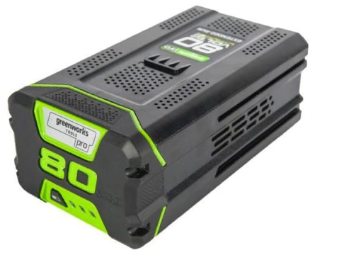 Аккумулятор GreenWorks 80 вольт (модель G80B4) — это литий ионная (Li-ion) батарея, силой тока 4 ампер/час и выполненная по самой современной технологи.