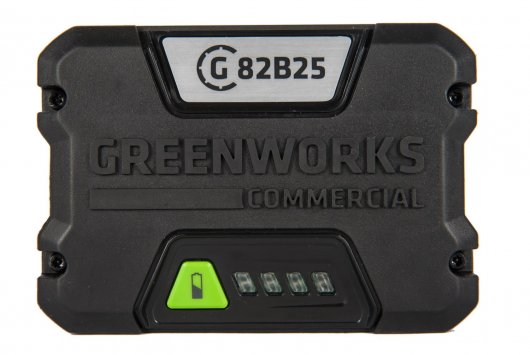 Аккумулятор Greenworks GC82B25 82V 2,5 А.ч представляет собой универсальную Li-Ion батарею, которая подходит ко всем устройствам марки Greenworks серии 82V Commercial.