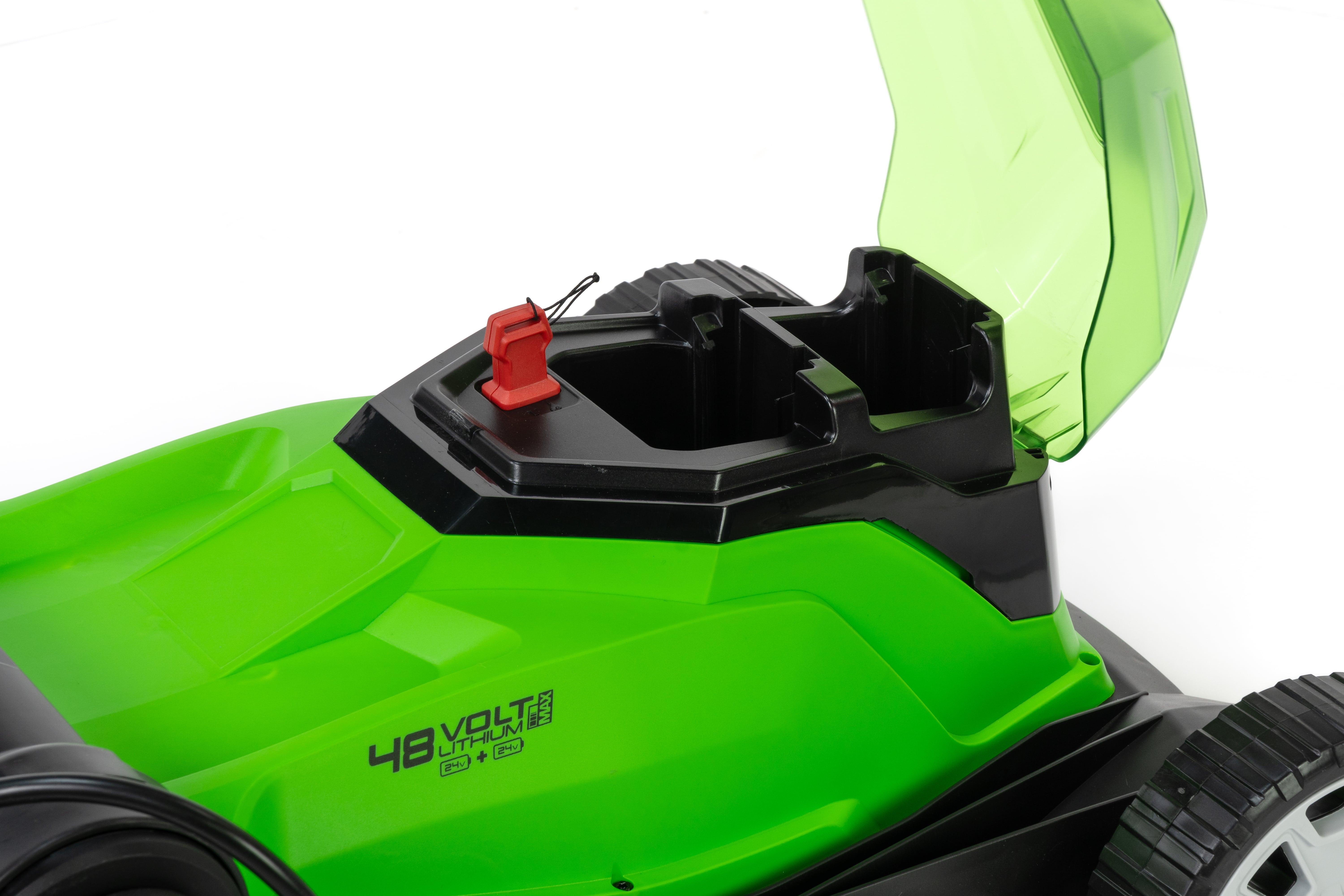 Greenworks G24X2LM41 - универсальная газонокосилка, предназначенная для использования на малых и средних садовых участках. Батарееприемник газонокосилки вмещает две аккумуляторные батареи 24В, что позволяет увеличить время её работы. Являясь частью продуктовой линейки 24В, аккумуляторная батарея может использоваться с любым другим устройством данного вольтажа , что делает работу еще более комфортной и удобной.