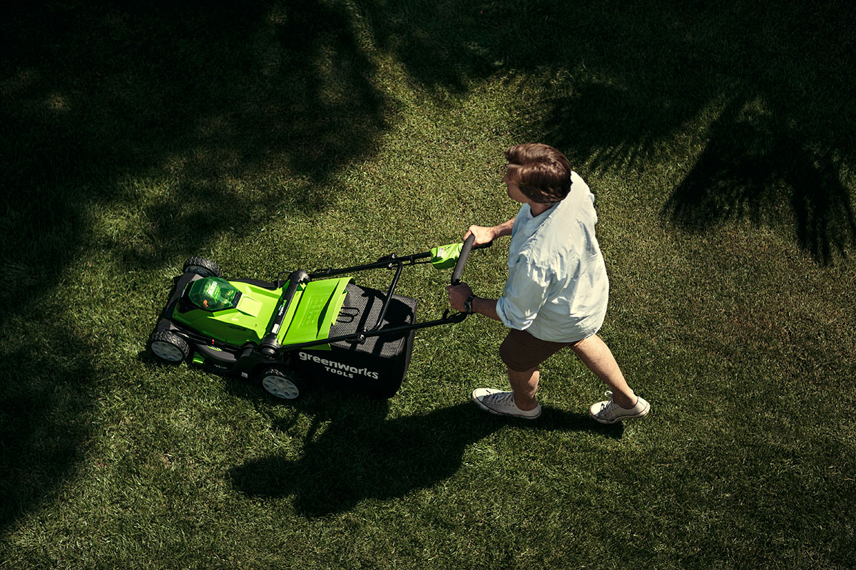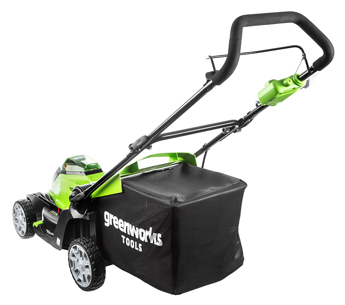 Газонокосилка аккумуляторная Greenworks G40LM41 — легкая и практичная газонокосилка с большой шириной скоса. Хорошо подойдет для обработки участков средней площади.